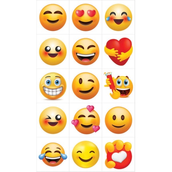 Zestaw 15 naklejek samoprzylepnych z emotikonami idealnie nadaje się do wykorzystania przy wszelkich pracach kreatywnych. Naklejkami można ozdobić kartki okolicznościowe, prezenty, notesy, zeszyty i pudełka. Sprawdzą się również jako nagrody motywacyjne.
