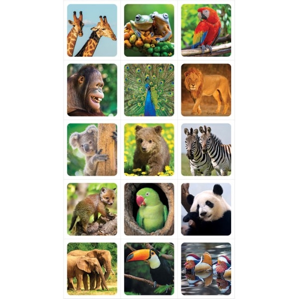 Zestaw 15 naklejek samoprzylepnych ze zwierzętami idealnie nadaje się do wykorzystania przy wszelkich pracach kreatywnych. Naklejkami można ozdobić kartki okolicznościowe, prezenty, notesy, zeszyty i pudełka. Sprawdzą się również jako nagrody motywacyjne.