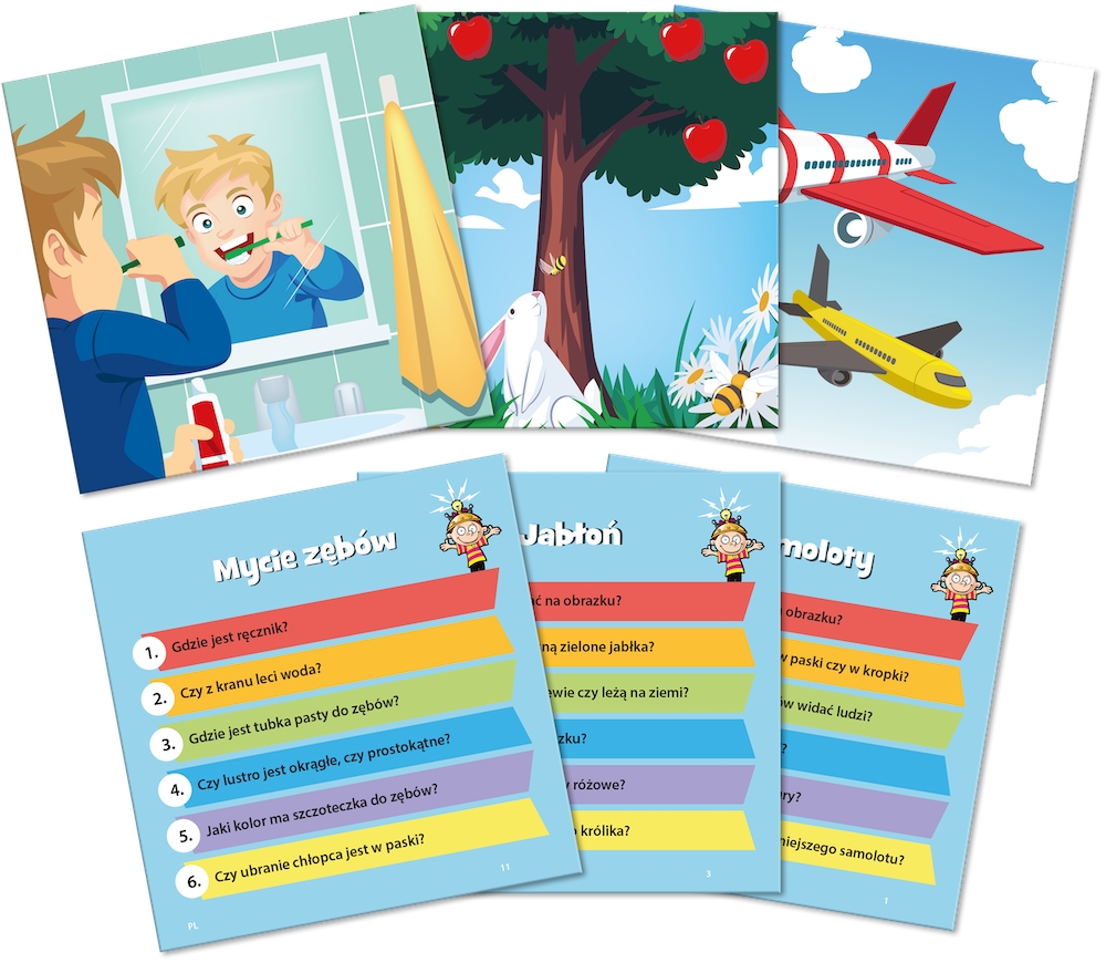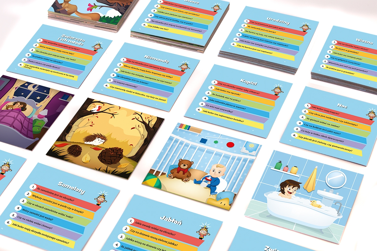 Każde pudełko to zestaw kart, które po jednej stronie mają obrazek (należy przyjrzeć mu się przez określony czas), a z drugiej zestaw pytań, sprawdzających nie tylko naszą pamięć, ale też wiedzę z zakresu danego przedmiotu.