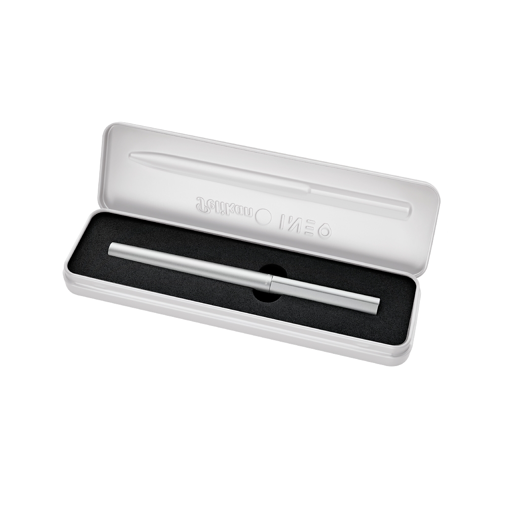 Pióro wieczne Pelikan Ineo to esencja nowoczesnego designu i wysokiej jakości wykonania. Minimalistyczna, pozbawiona klipsa forma w połączeniu z anodowanym, matowym wykończeniem aluminium nadaje mu elegancki, profesjonalny charakter. Anodowanie to proces elektrochemiczny, który zwiększa trwałość powierzchni, chroniąc ją przed zarysowaniami i korozją. Specjalne wyprofilowanie górnej części korpusu zapobiega staczaniu się pióra z biurka, a ergonomiczna budowa sprawia, że pisanie nim jest wyjątkowo wygodne. Wyposażone w stalówkę ze stali nierdzewnej, pióro oferuje płynność i precyzję pisania, a obsługa na naboje atramentowe czyni je praktycznym towarzyszem codziennej pracy. To doskonały wybór zarówno dla indywidualnych użytkowników, jak i jako elegancki produkt firmowy – z możliwością nadruku lub grawerowania.