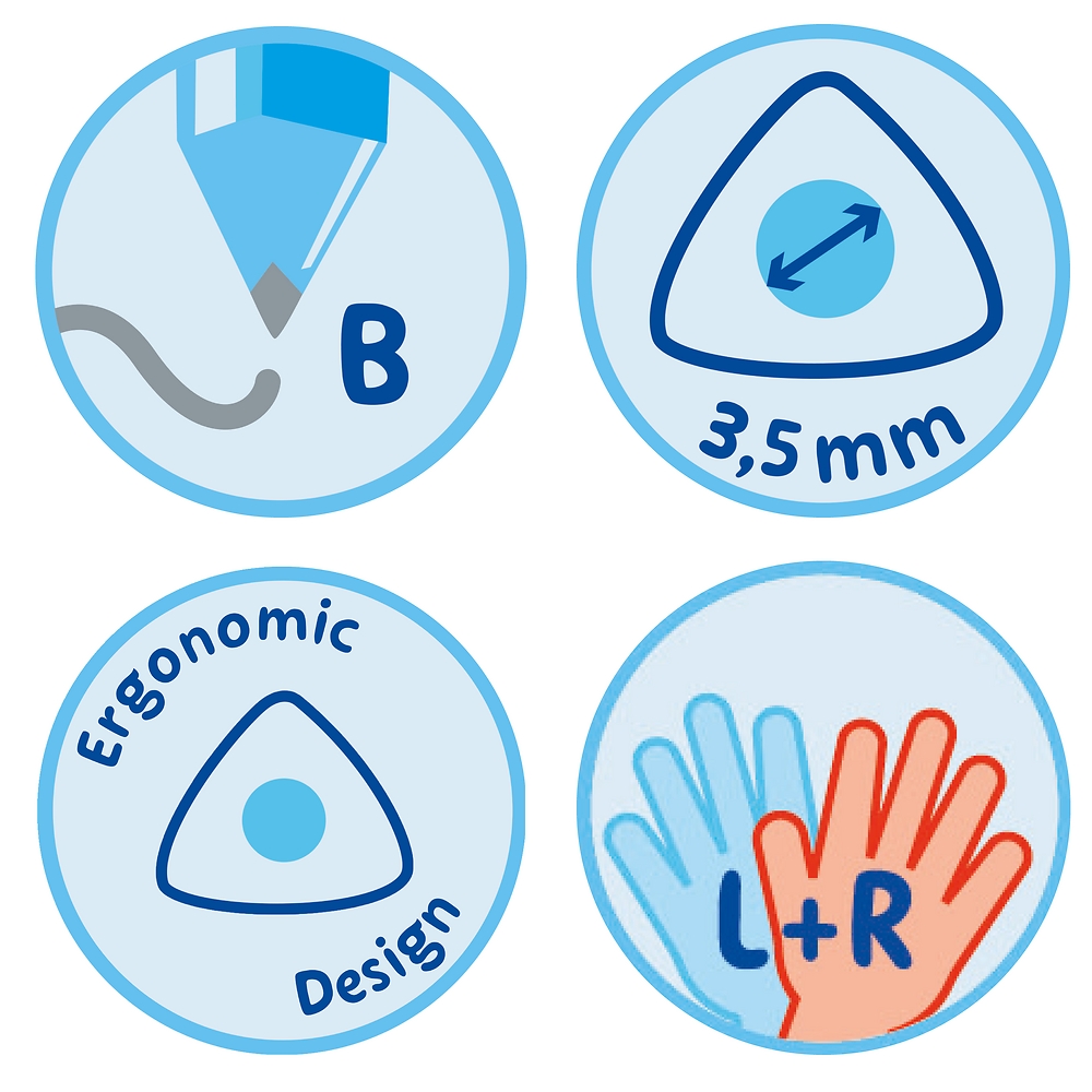 - Trójkątny przekrój wspiera prawidłowe trzymanie ołówka