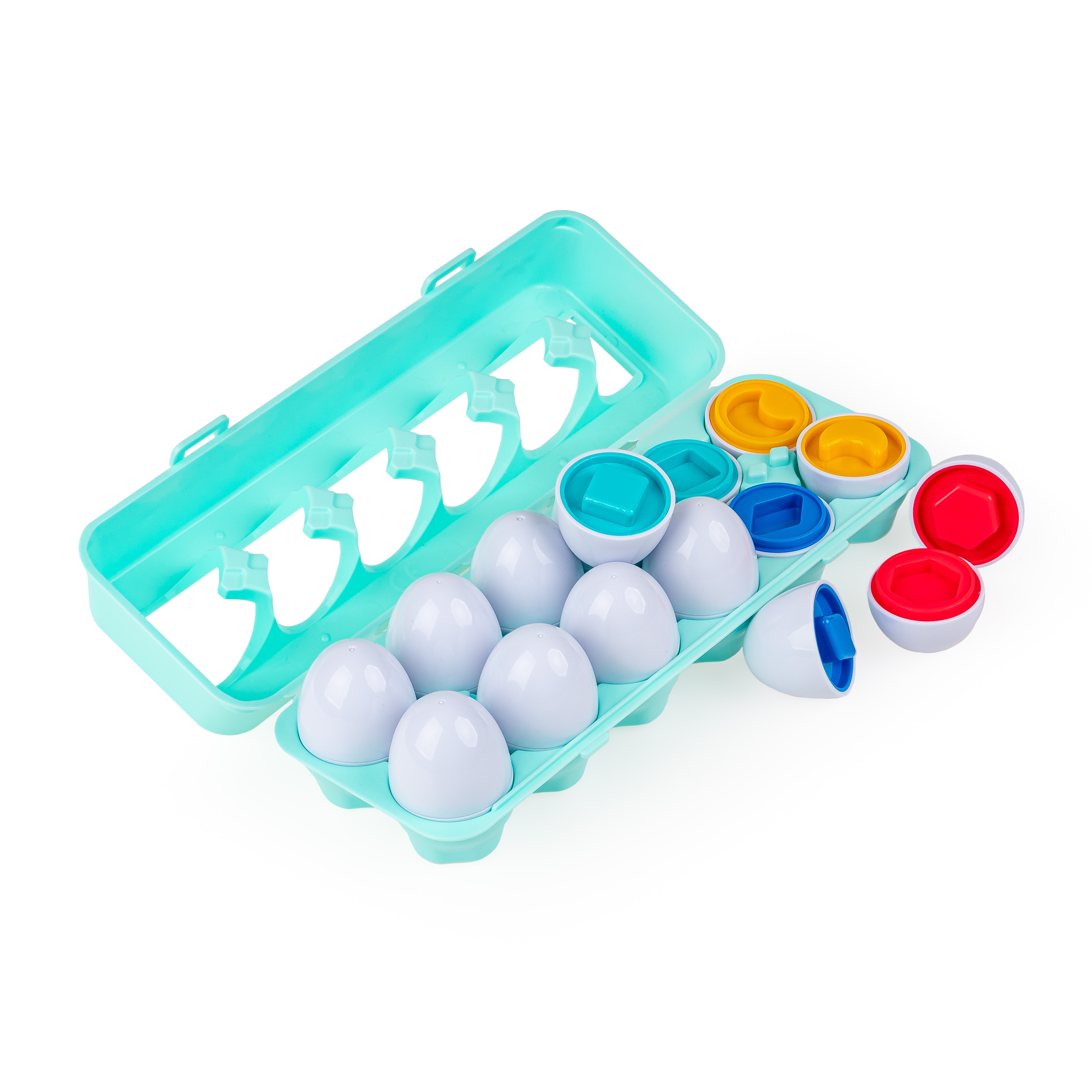 - w zestawie 12 jajek (do rozdzielenia na pół) i zamykane opakowanie na jajka w kształcie wytłaczanki;
