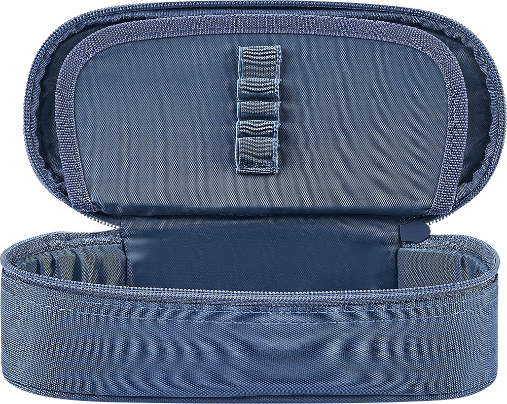 Funkcjonalny piórnik z klapką idealny do przechowywania wszelkich szkolnych przyborów. Uniwersalny kolor przypominający jeans będzie doskonale pasował do każdego szkolnego plecaka. Ponadczasowy, minimalistyzny design nie wyjdzie z mody nawet po długim czasie, dzięki czemu możesz być pewny, że przez cały rok szkolny Twój styl będzie zgodny z obecnym i trendami.