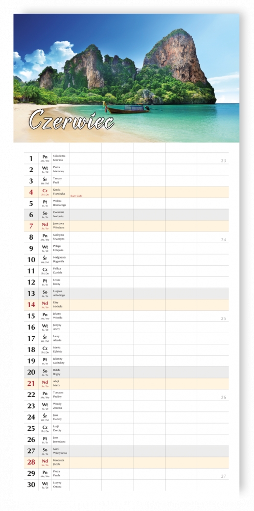 - układ kalendarium: 1 miesiąc - 1 strona