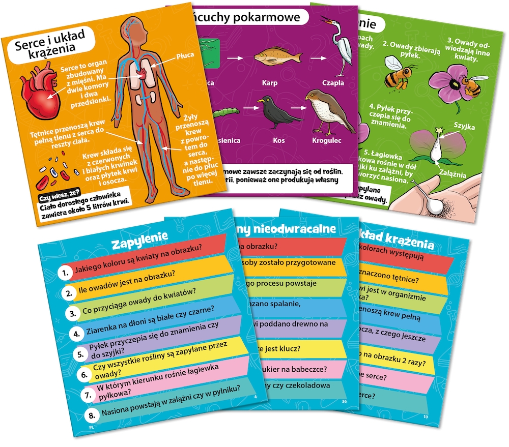 - Jeśli odpowiedź jest prawidłowa, zatrzymaj kartę. Jeśli jest błędna, odłóż kartę do pudełka. Teraz kolej na następnego gracza.