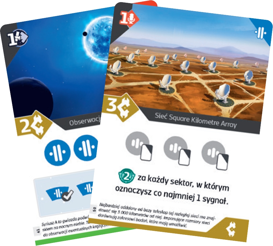 - SETI oferuje mnóstwo zmiennych elementów i zaskoczeń, a każda rozgrywka pozwala na wypróbowanie nowych strategii. Losowy jest nie tylko dobór kart, ale też cele na kafelkach punktacji, a także początkowe położenie dysków na planszy Układu Słonecznego, dzięki czemu każdą partię zaczynamy w zupełnie inny sposób.