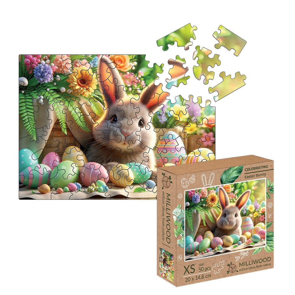 50 nieregularnych elementów sprawia, że zabawa jest jeszcze bardziej ekscytująca, rozwijając przy tym spostrzegawczość i zdolności manualne. Dzięki poręcznemu, estetycznemu pudełku z owijką puzzle świetnie sprawdzą się jako drobny upominek na Wielkanoc. Radosne, wiosenne kolory i uroczy motyw wprowadzą dzieci w świąteczny nastrój!