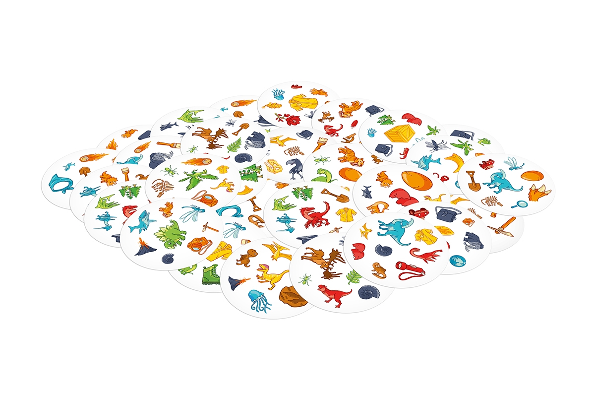 Zestaw zawiera 55 kart z najpopularniejszymi dinozaurami i innymi prehistorycznymi zwierzętami oraz przedmiotami kojarzącymi się z wykopaliskami. Wyraziste, kolorowe obrazki łatwo nazwać, dzięki czemu możemy zaprosić do zabawy dzieci od 4. roku życia.
