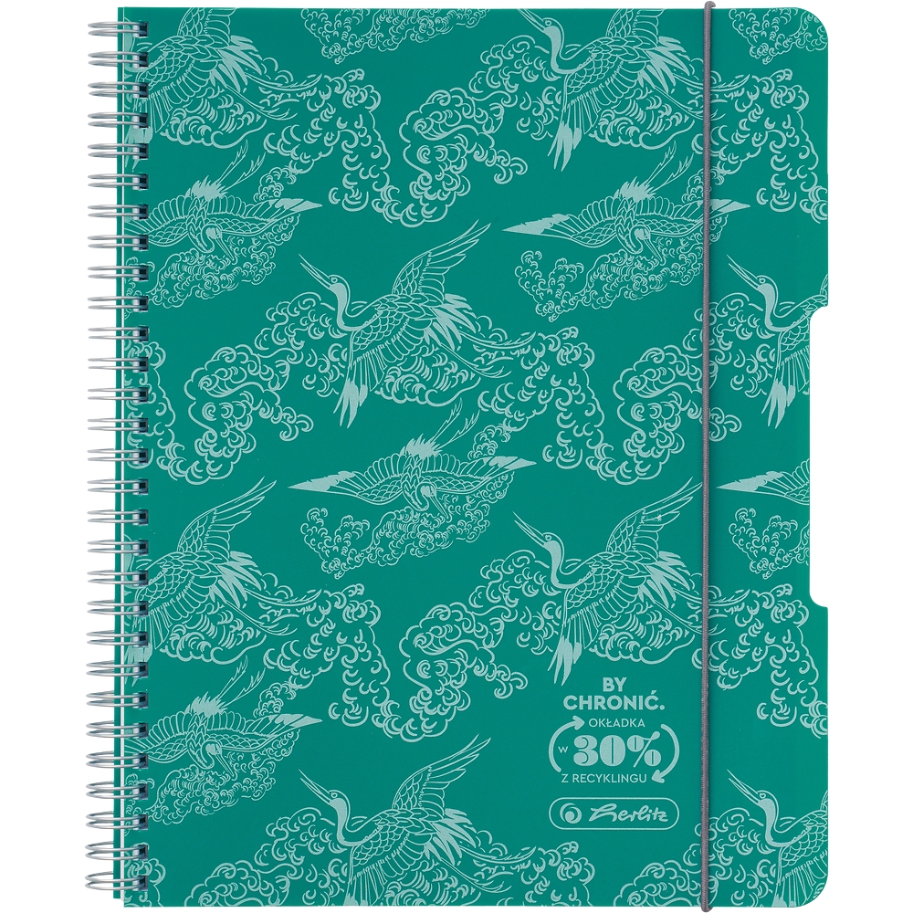 Kołozeszyty Herlitz Eco PP to idealne połączenie nowoczesnej formy, stylowego wyglądu i troski o środowisko. Ich okładki wykonane z trwałęgo polipropylenu, pokryte delikatnymi, botanicznymi nadrukami, wyróżniają się subtelnym, naturalnym charakterem i jednocześnie oferują trwałą, wodoodporną ochronę. Co ważne, 30% użytego materiału pochodzi z recyklingu odpadów postprodukcyjnych, które powstały przy produkcji miękkiego plastiku, a całość w 100% nadaje się do ponownego przetworzenia. Zeszyt wyposażony jest w czarną, podwójną spiralę, która umożliwia otwarcie na płasko i wygodne pisanie na każdej stronie, a czarna gumka zamykająca chroni notatki i zapobiega ich zaginaniu. To idealne rozwiązanie dla uczniów i studentów, którzy chcą sięgać po produkty świadome, trwałe i estetyczne. Dostępne w czterech pastelowych kolorach z nadrukiem: błękitnym, miętowym, różowym i turkusowym.
