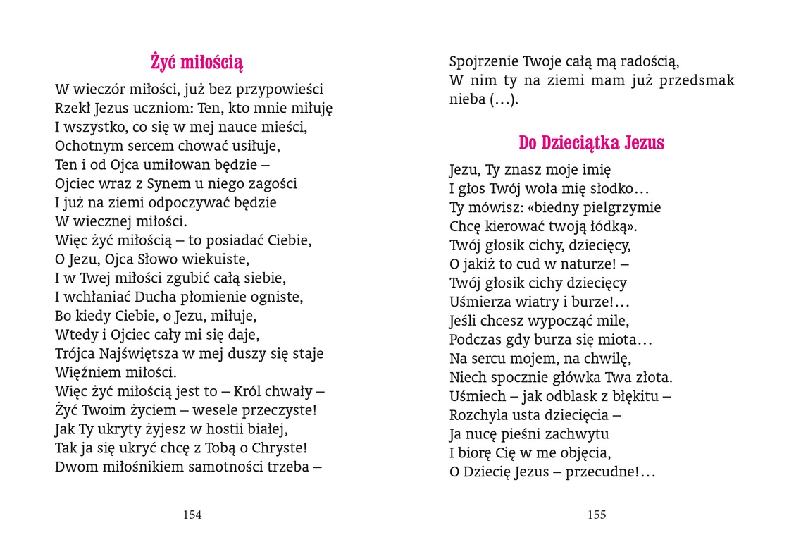 Publikacja zawiera starannie dobrany zbiór modlitw, rozważań oraz tekstów inspirowanych życiem i duchowością św. Teresy od Dzieciątka Jezus – niezwykłej świętej, doktora Kościoła. W modlitewniku znajdują się słowa modlitw i duchowych medytacji autorstwa św. Teresy z Lisieux oraz modlitwy za jej wstawiennictwem – zarówno tradycyjne, jak i mniej znane. Poruszające teksty rozważań zaczerpnięto z Dziejów duszy oraz listów świętej. Znajdziemy tu również nowenny, litanie, rozważania różańcowe oraz koronkę, nowenny i drogę krzyżową w duchu „małej drogi” – prostoty, pokory i całkowitego zawierzenia Bożej miłości.