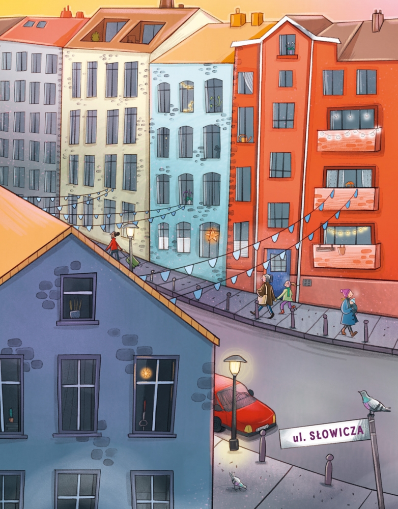 Okazuje się, że tego dnia można obchodzić tyle różnych świąt – i sami możemy zdecydować, jakie to będą święta. A gdy na dworze zaczyna padać pierwszy tej zimy śnieg, sąsiedzi wychodzą z domów i na ulicy Słowiczej robi się magicznie, gwarnie i miło. Bo święto pierwszego śniegu mogą obchodzić wszyscy! Ciepła i prześlicznie zilustrowana książka, która uczy empatii i szacunku. Zapoznaje też dzieci ze świętami obchodzonymi przez wyznawców różnych religii. I pokazuje, że każdy ma prawo świętować po swojemu.