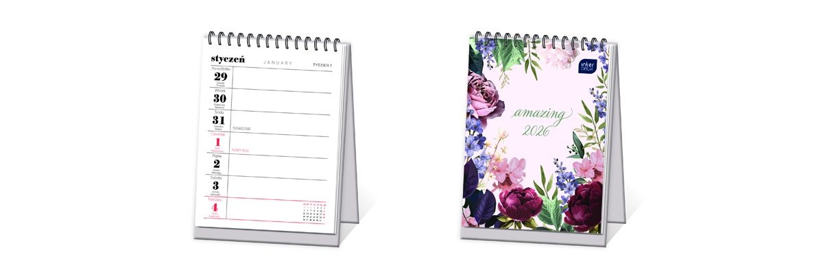 Tytuł: Kalendarz na biurko tygodniowy pionowy - KwiatyProducent: Interdruk