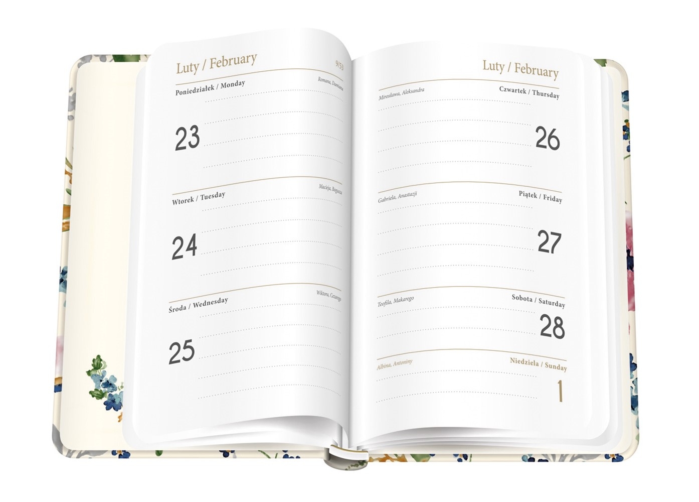 - kalendarium: 1 tydzień na dwóch stronach
