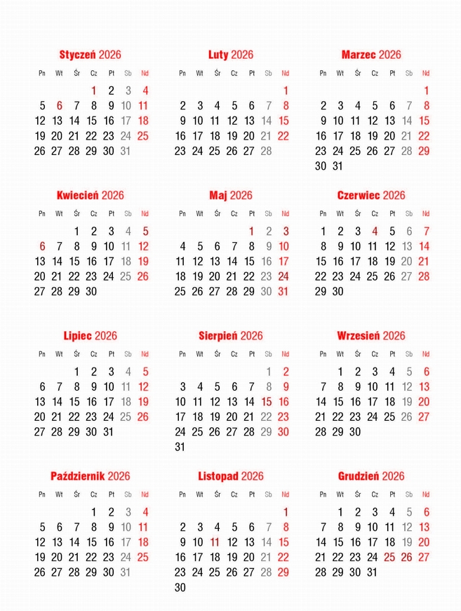 - Wygodny, niewielki kalendarz ścienny, drukowany na papierze kredowym w oprawie spiralnej.