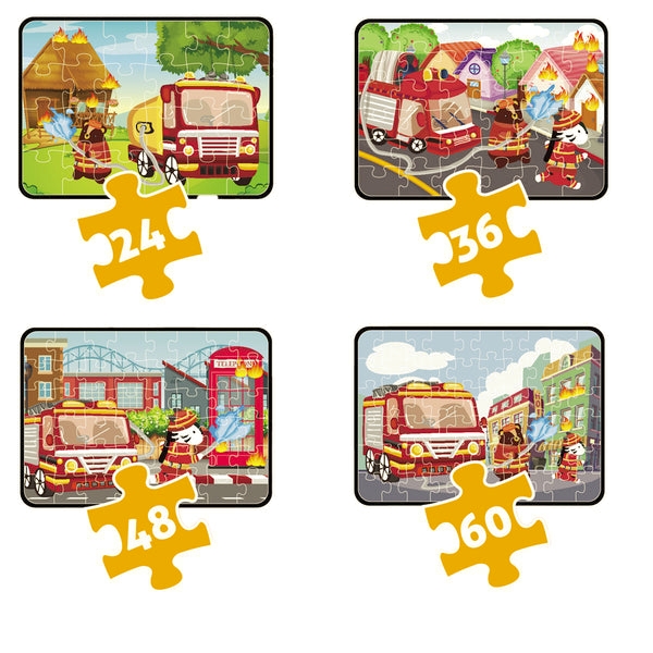 Puzzle 4w1 – straż pożarna to świetna propozycja dla najmłodszych miłośników akcji ratunkowych i służb mundurowych. W zestawie znajdują się aż 4 obrazki o różnym stopniu trudności – 24, 36, 48 i 60 elementów – dzięki czemu dziecko może stopniowo rozwijać swoje umiejętności.