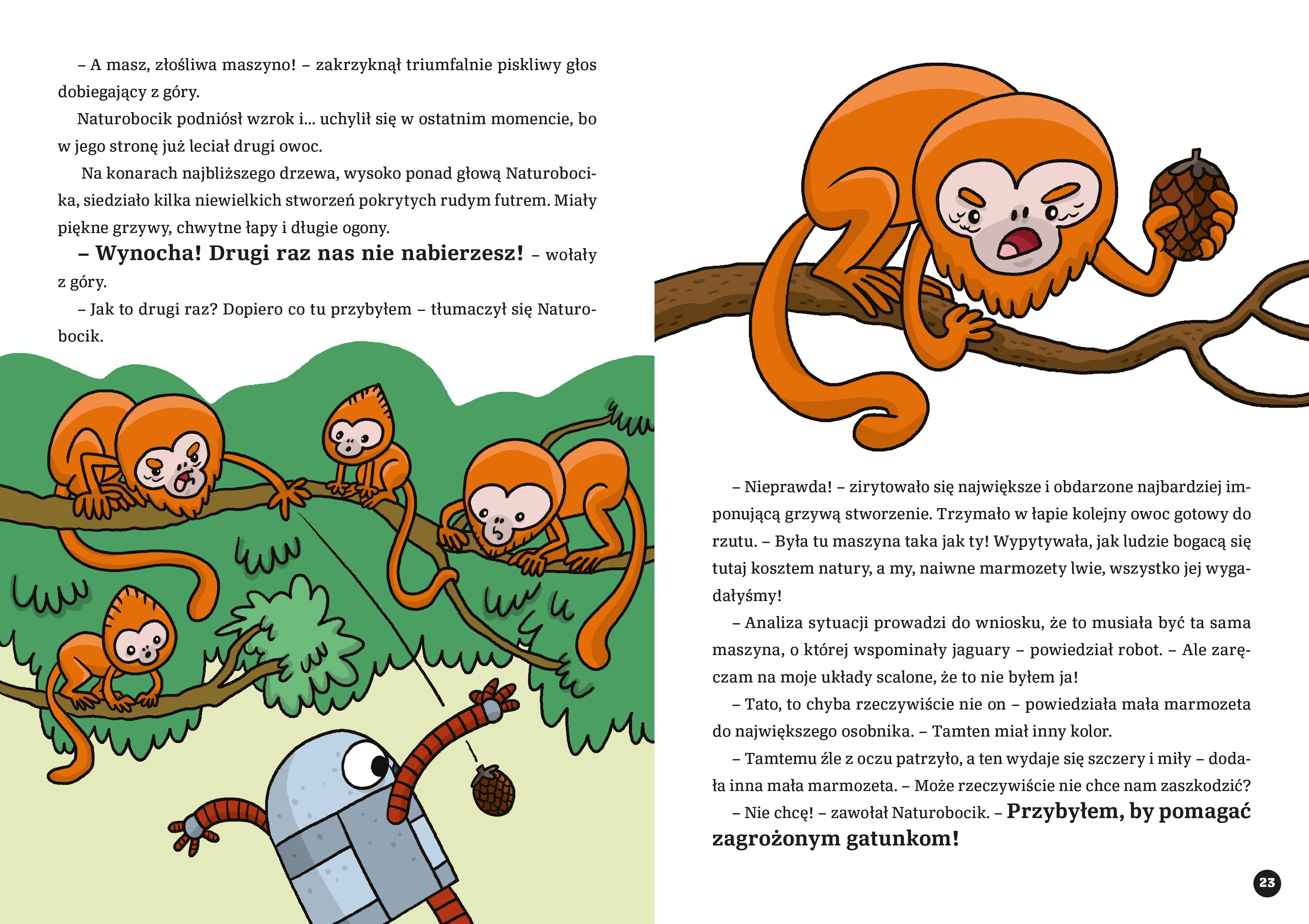 Czy Naturobocikowi wystarczy odwagi i pomysłowości? Czy zdobędzie zaufanie jaguarów i harpii wielkiej? Czy zdoła pomóc zagrożonym marmozetom?