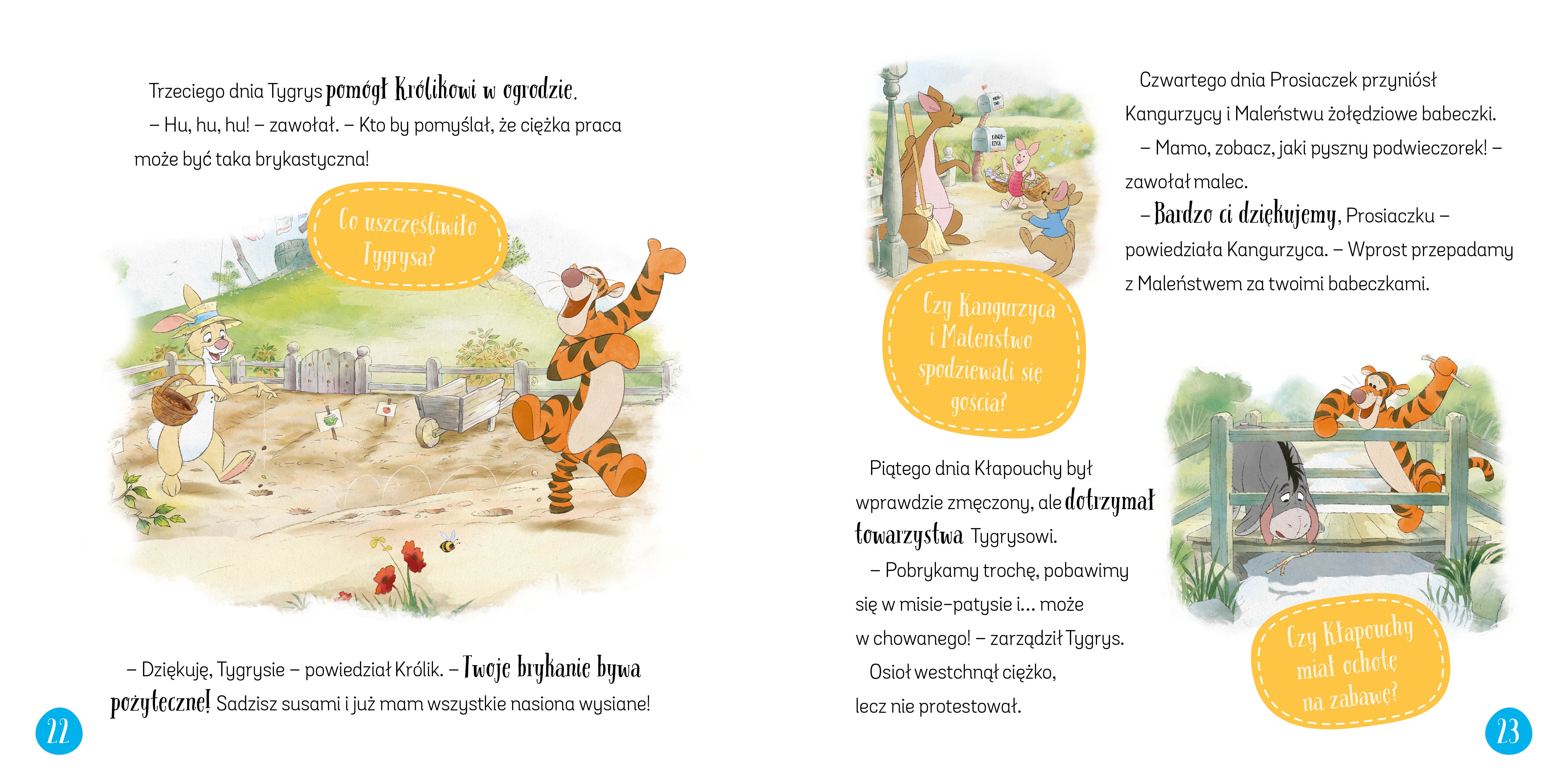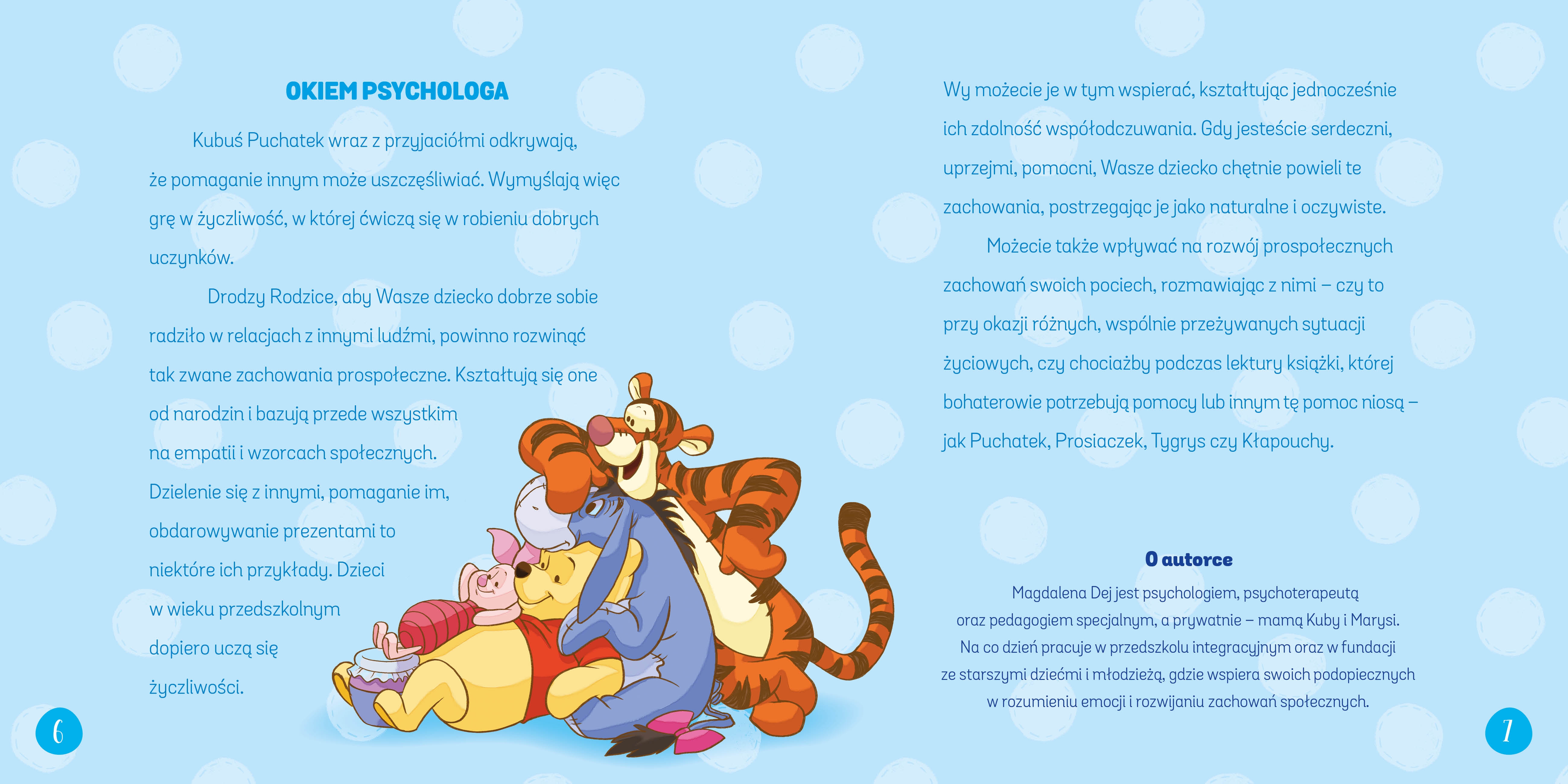 Rozbrykany Tygrys, lękliwy Prosiaczek, marzące o samodzielności Maleństwo… i oczywiście uczynny Kubuś – zarówno mieszkańcy Stumilowego Lasu, jak i ich mali fani miewają różne nastroje, z którymi czasem trudno sobie poradzić. Dzieci przekonają się jednak, że przy wsparciu Kubusia i jego przyjaciół wszystko staje się łatwiejsze. Wystarczy otworzyć tę wyjątkową kolekcję opowiastek!