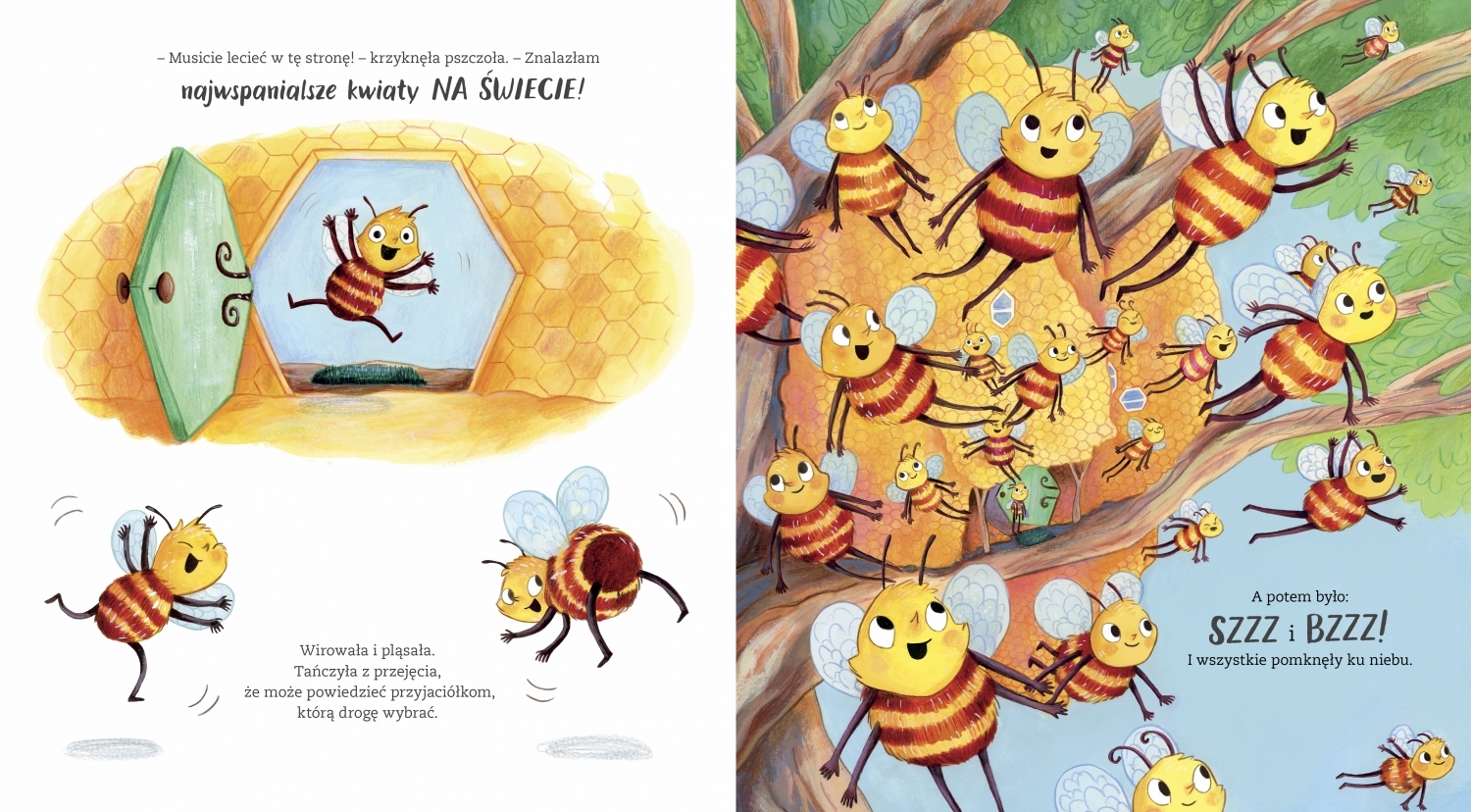 Mała pszczółka Isia boi się latać… Chciałaby fruwać wśród kwiatów, ale obawia się, że nie potrafi.