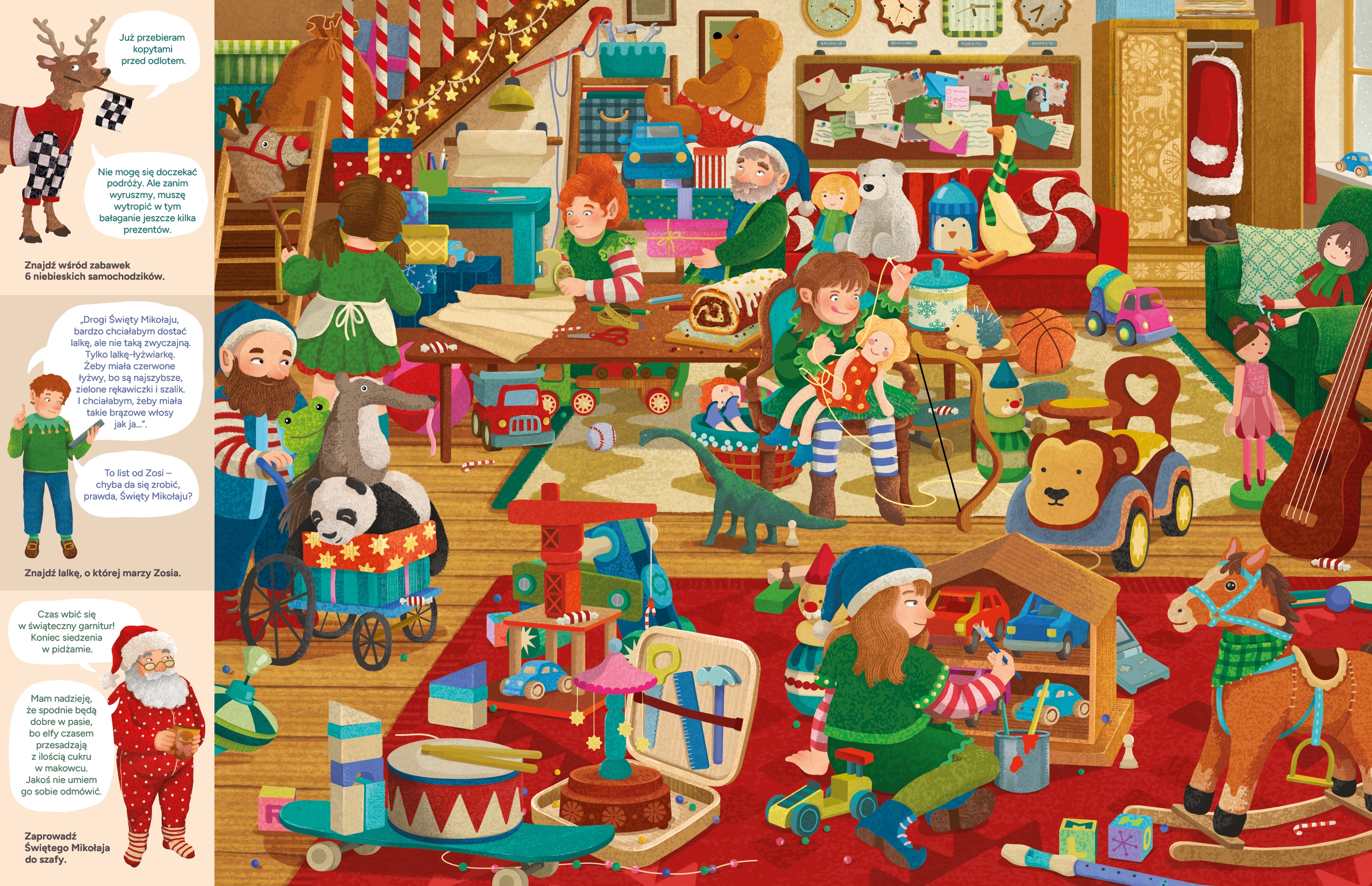 W domu Świętego Mikołaja panuje wielkie zamieszanie. Święta tuż-tuż, a jeszcze tyle spraw do załatwienia! Trzeba jak najszybciej pozbierać listy od dzieci, odnaleźć ozdoby na choinkę i przygotować prezenty… A to nie wszystko – zaginęły magiczne dzwonki! Bez nich renifery nie pociągną sań i Święty Mikołaj nie dostarczy dzieciom zabawek.