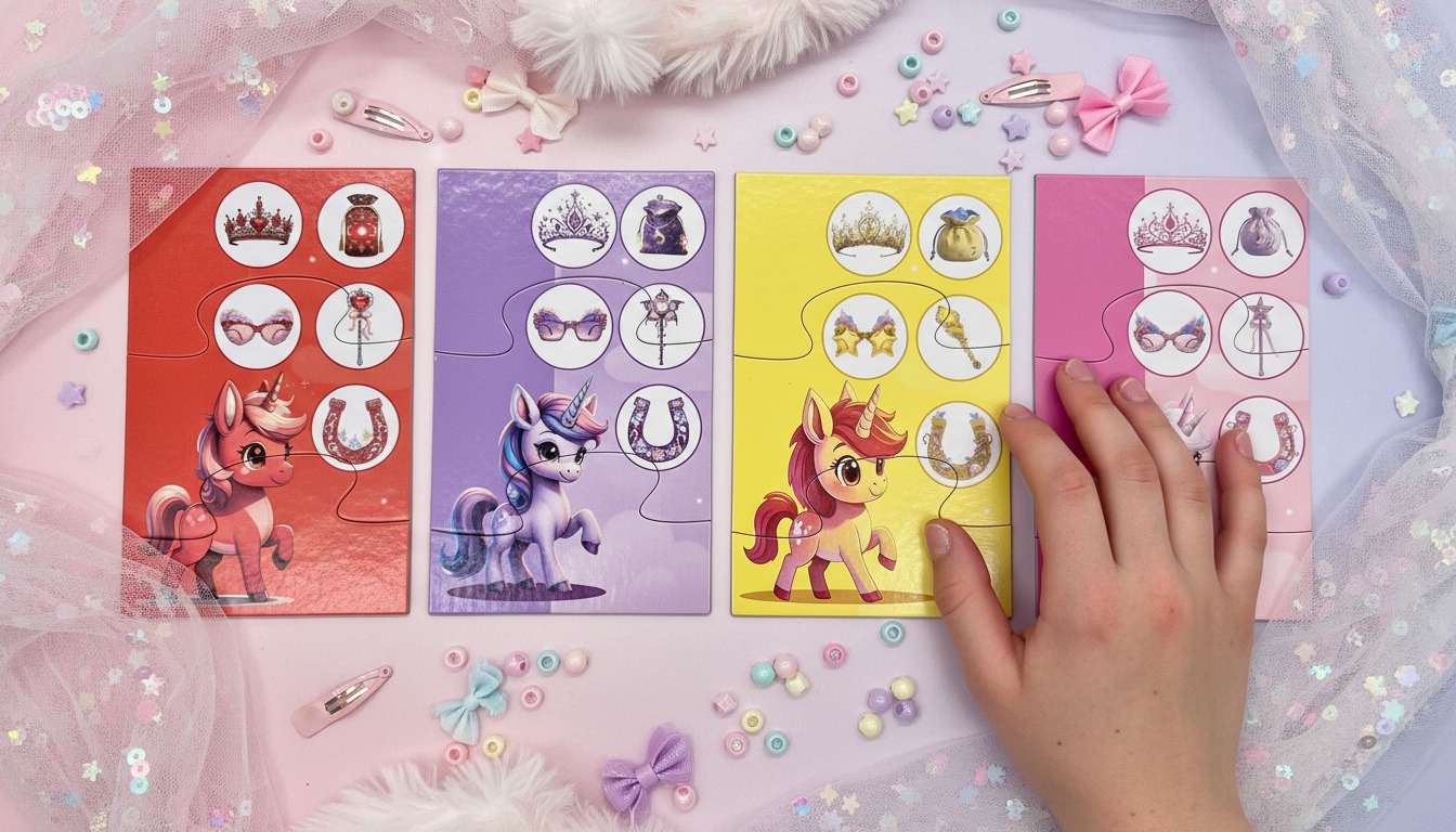 Podczas rozgrywki mali odkrywcy ćwiczą pamięć i spostrzegawczość, zapamiętując położenie żetonów i sprytnie je zdobywając. Emocje rosną z każdym rzutem kostką, a radość osiąga szczyt, gdy pierwszy jednorożec z kompletem przedmiotów dotrze do cudownego zamku!