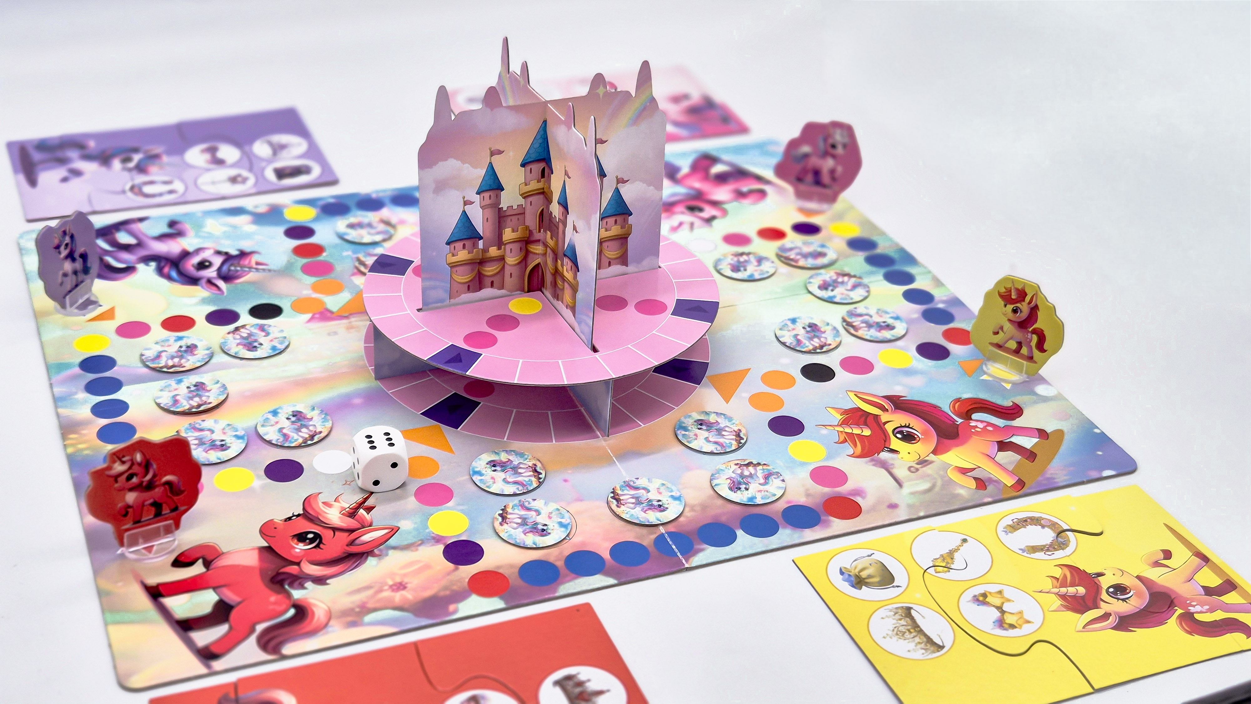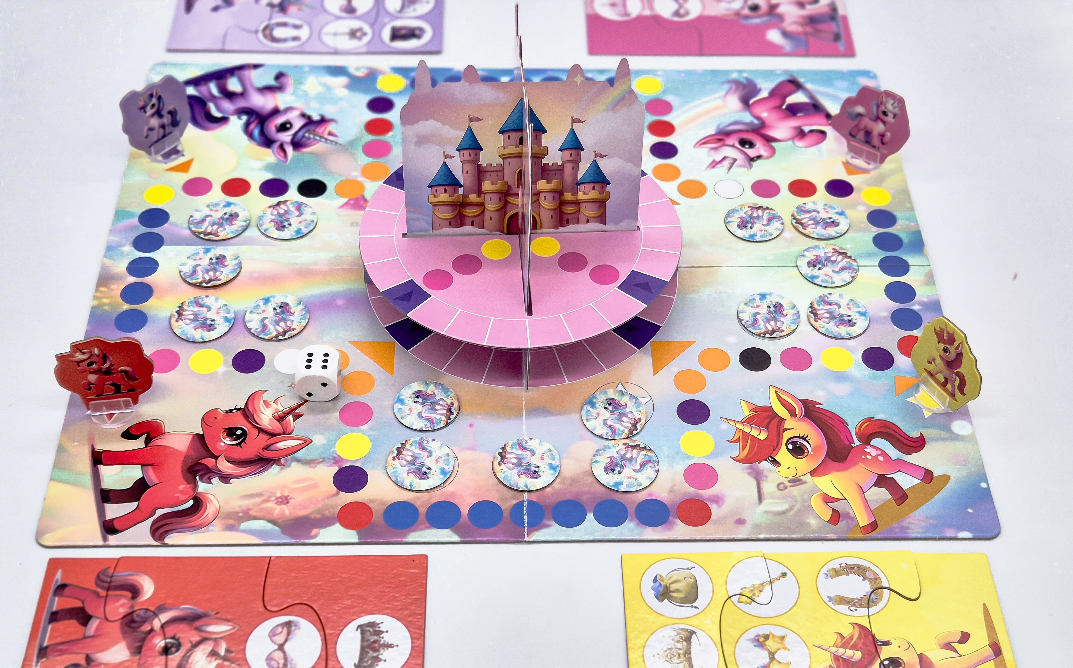 - Piękne wykonanie – kolorowa plansza, przestrzenny zamek 3D i urocze jednorożce zachwycą każdego małego gracza.