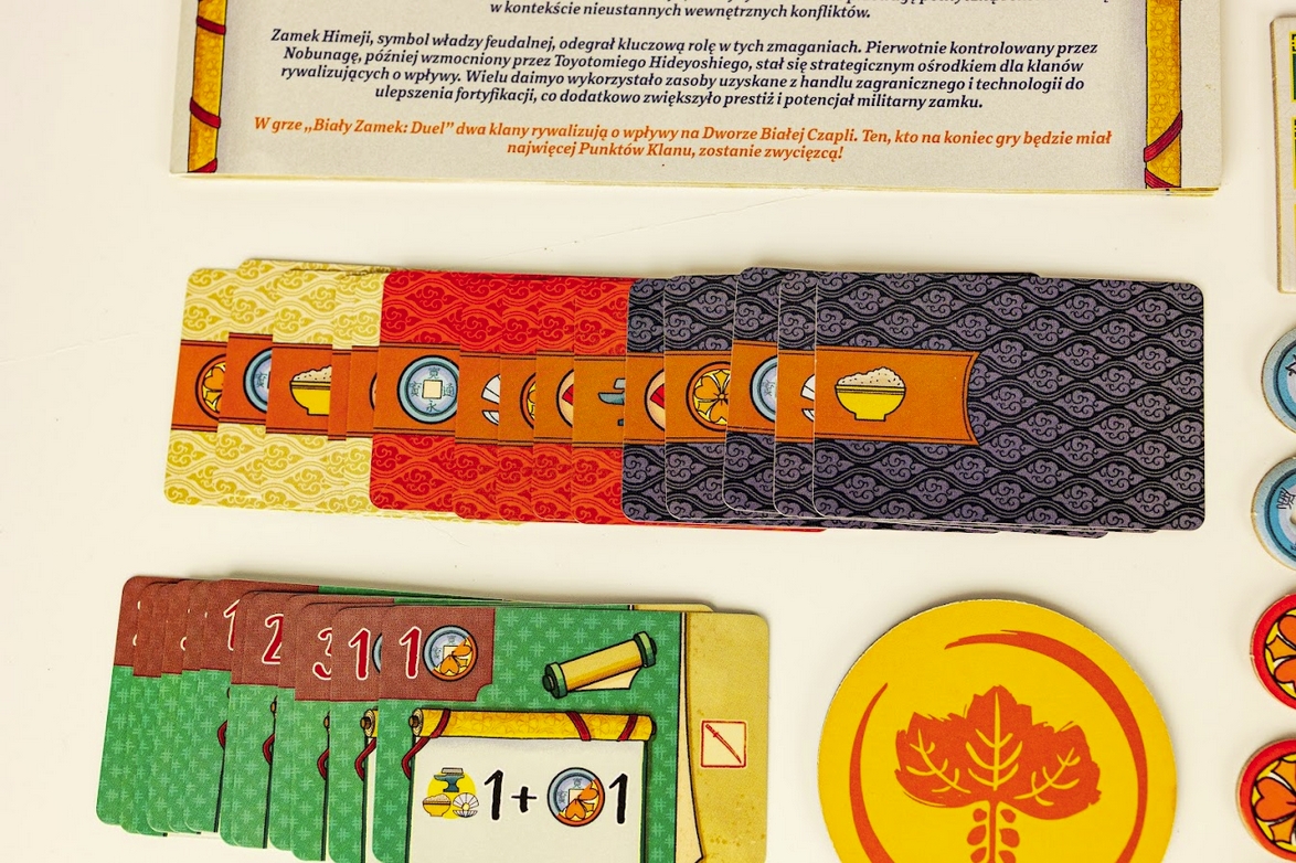 W Białym Zamku: Duel dwa klany rywalizują o wpływy na Dworze Białej Czapli. Autorzy Białego Zamku powracają z tytułem, który atmosferą, kombosami i zwartością wzoruje się na oryginale, ale proponuje zupełnie nową, równie pochłaniającą rozgrywkę dla dwóch graczy. W okresie Nanban Japonia doświadczała wymiany kulturalnej i handlowej z Portugalią, wzmocnienia pozycji Daimyo, oraz konsolidacji władzy politycznej i wojskowej w strategicznych twierdzach, takich jak zamek Himeji.