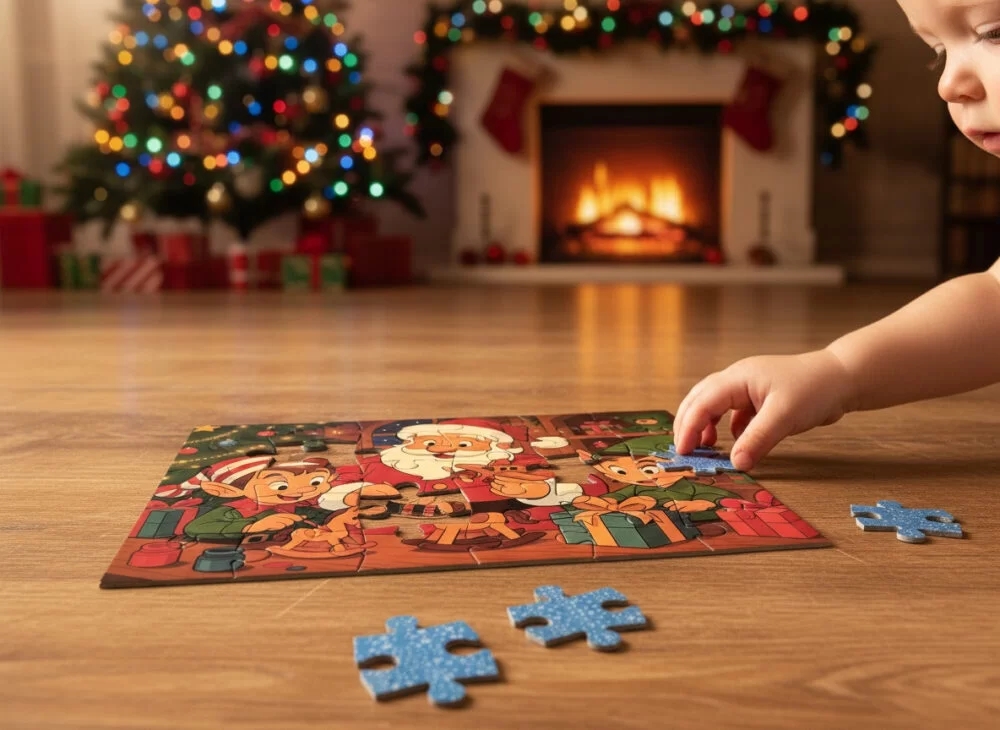 Wejdź do magicznego świata, gdzie Święty Mikołaj i jego elfy przygotowują prezenty przy blasku choinki. Układanie puzzli staje się nie tylko zabawą, ale i podróżą do miejsca pełnego ciepła, radości i świątecznej magii. Duże elementy sprawiają, że puzzle są idealne dla najmłodszych, a barwna ilustracja zachwyci całą rodzinę. To wspaniały sposób na wspólne, zimowe wieczory i tworzenie niezapomnianych wspomnień.