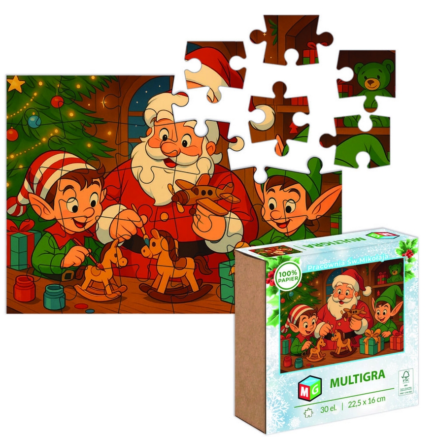 Tytuł: Puzzle 30: Christmas – Pracownia Św. MikołajaPodtytuł: Wiek: 4+