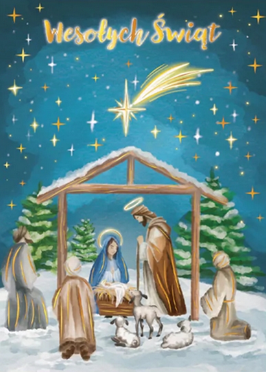 Karnet KW BN W BETLEJEM wydrukowany na wysokiej jakości papierze formatu B6. Karnet uszlachetniony złotą folią. W zestawie czerwona koperta.