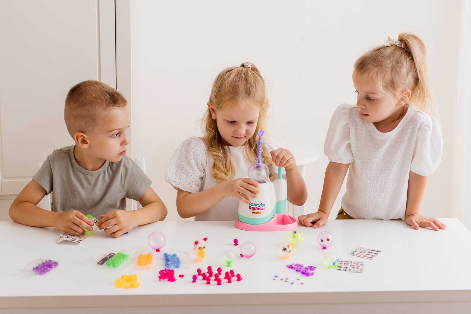 - w zestawie 195 elementów do stworzenia balonowych stworków (w tym: 60 balonów, 90 naklejek, 44 akcesoria oraz maszynka do balonów);