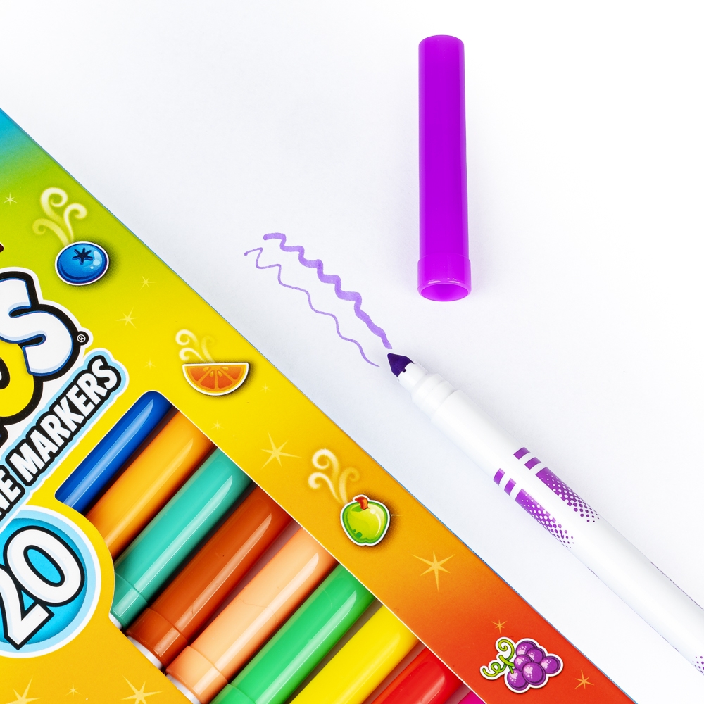Ten zestaw pachnących flamastrów bez trudu zastąpi dwa rodzaje mazaków! Wszystko za sprawą końcówki, która umożliwia rysowanie zarówno grubej, jak i cienkiej, precyzyjnej linii. Zestaw zawiera aż dwadzieścia flamastrów, różniących się kolorem i zapachem.