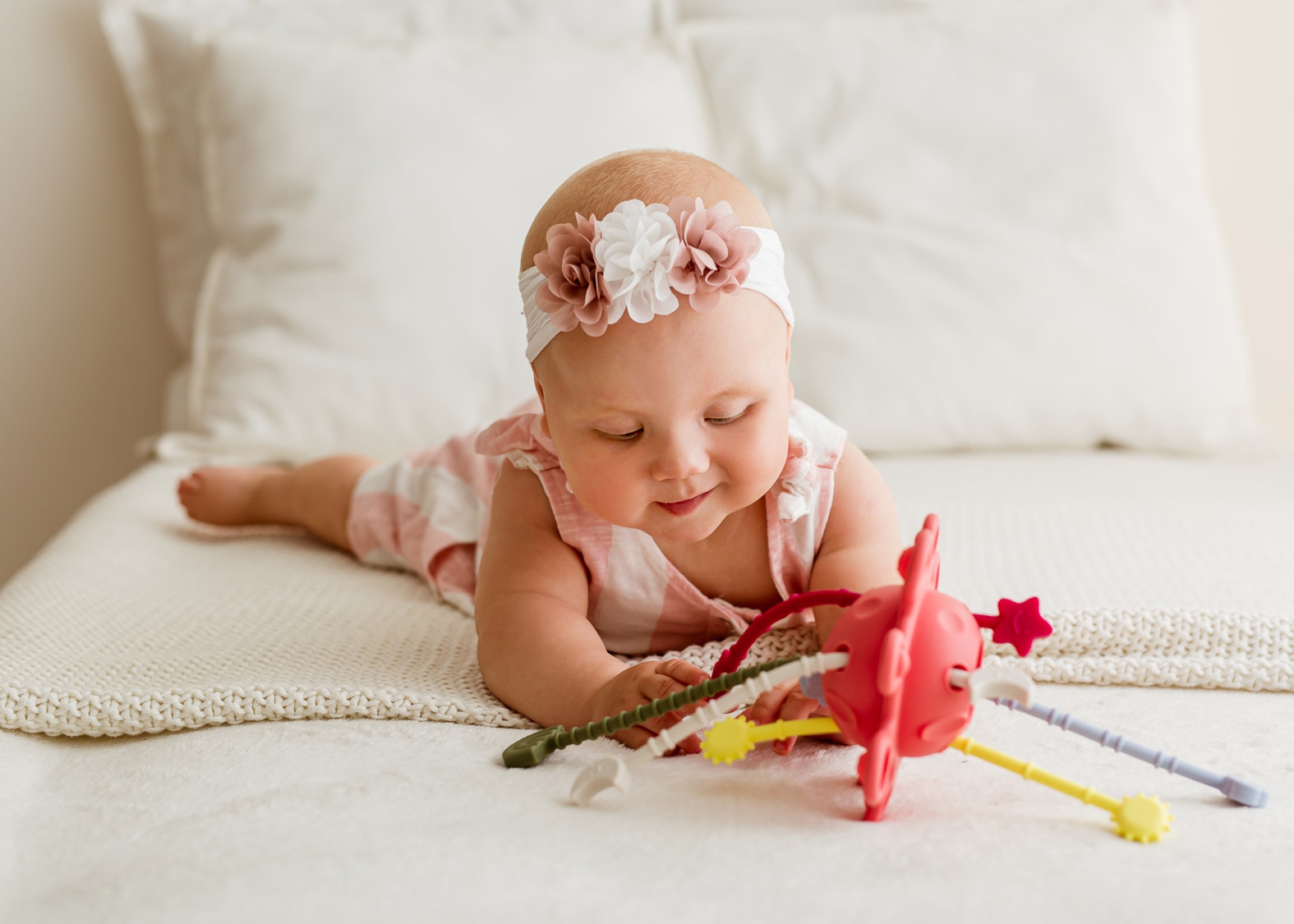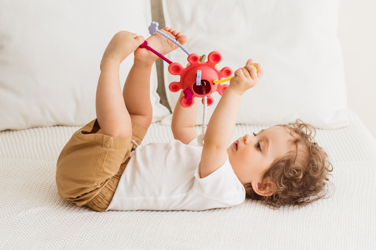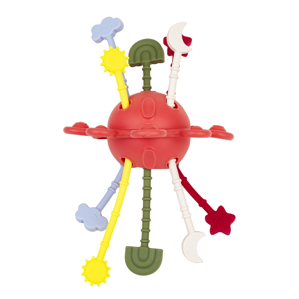 Hej, maluszku, pora na kosmiczną przygodę! Galaktyka to mięciutka zabawka wyposażona w kuleczki do wciskania. Czynność ta pomaga maluchom ćwiczyć precyzję i sprawność paluszków. Jakby tego było mało, na miłośników odlotowej zabawy, czekają tu też kolorowe linki do przeciągania, a każda z nich zakończona jest innym kształtem.