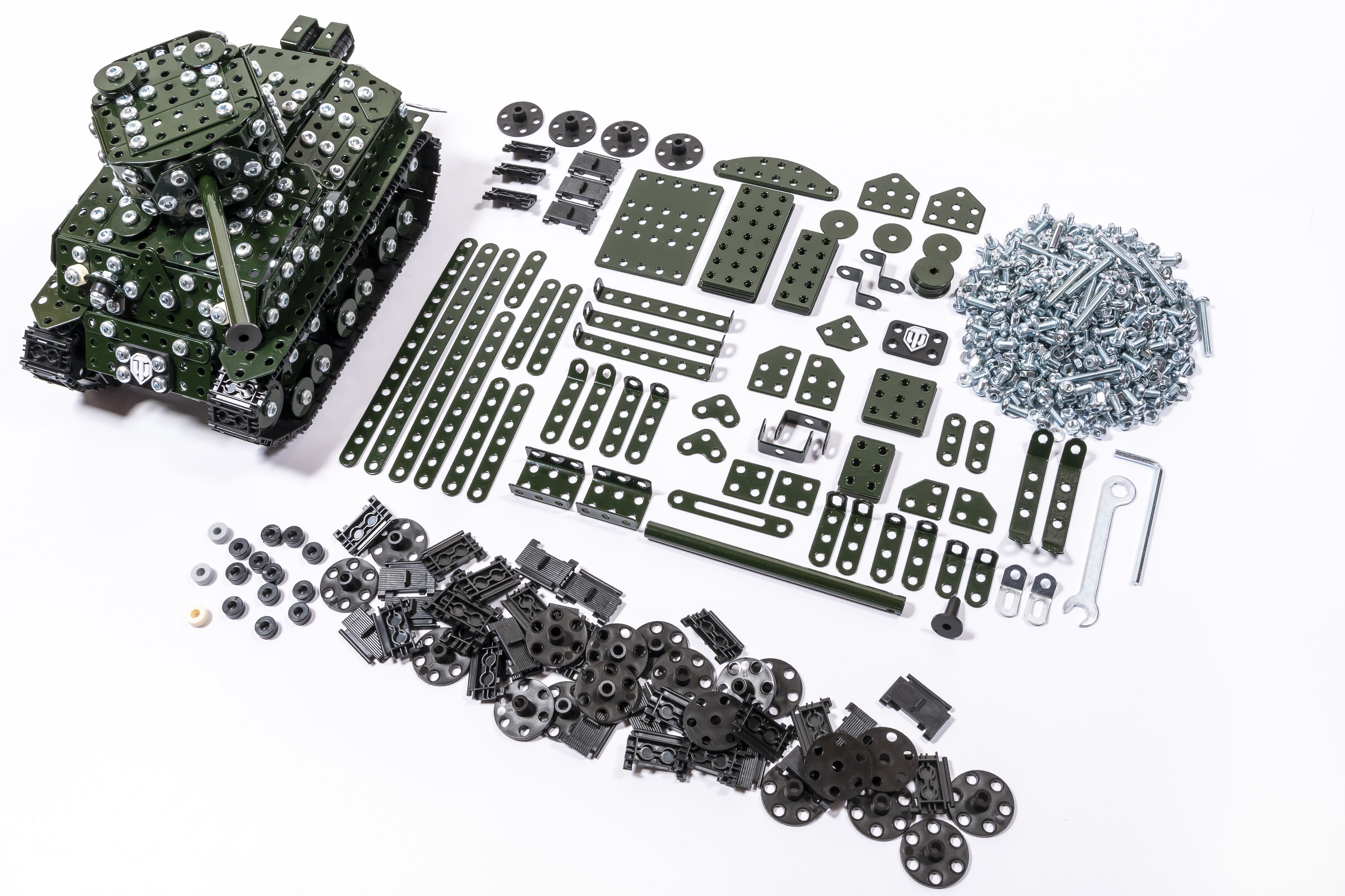 SHERMAN M4A3E8 - wszechstronny król bitew. Teraz w postaci metalowego modelu czołgu do samodzielnego złożenia, jako efektowna dekoracja dla każdego miłośnika gry WORLD OF TANKS. Rękodzieło złożone z 1271 metalowych blaszek i śrubek, które już wkrótce może zdobić twoją półkę, komodę, biurko czy gablotę.