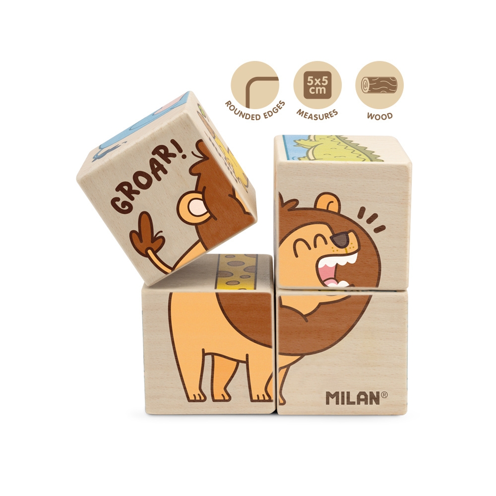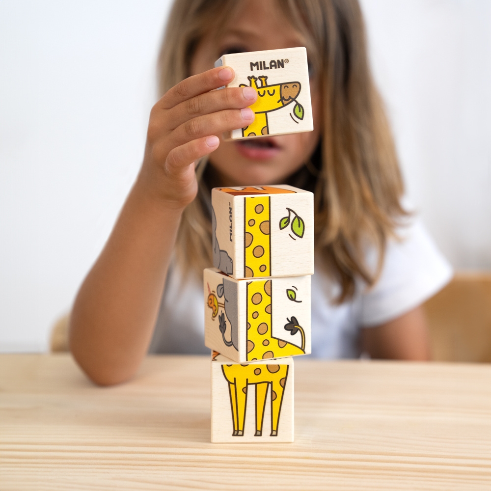 Puzzle drewniane w kształcie kostki - Dzikie safari (1918)