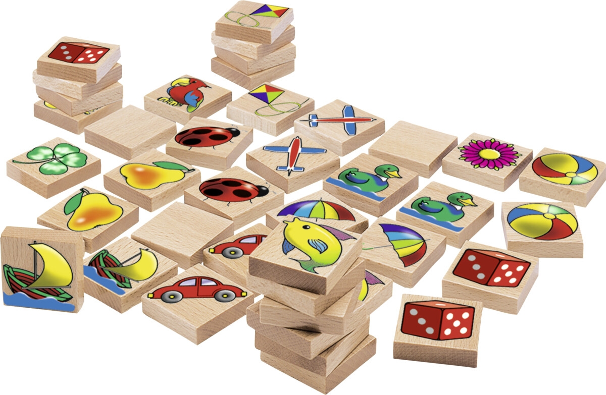 Drewniana obrazkowa gra pamięciowa wysokiej jakości – rozwija umiejętności poznawcze i zachęca do zabawy. Drewno z certyfikatem FSC® 100%, wyprodukowano w Niemczech.