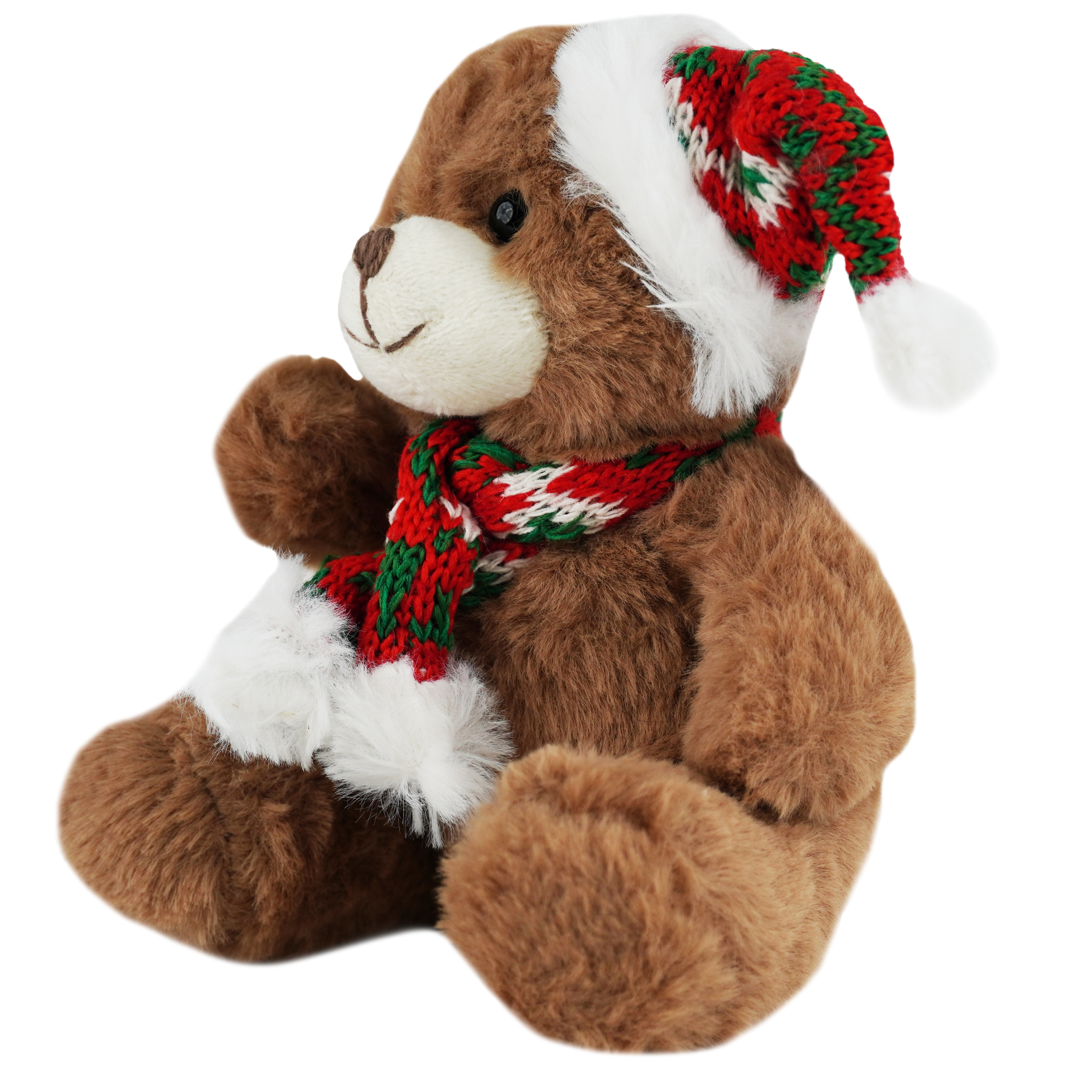 Świąteczny pluszowy miś w czapce Mikołaja, który będzie idealnym elementem wystroju w okresie Bożego Narodzenia!