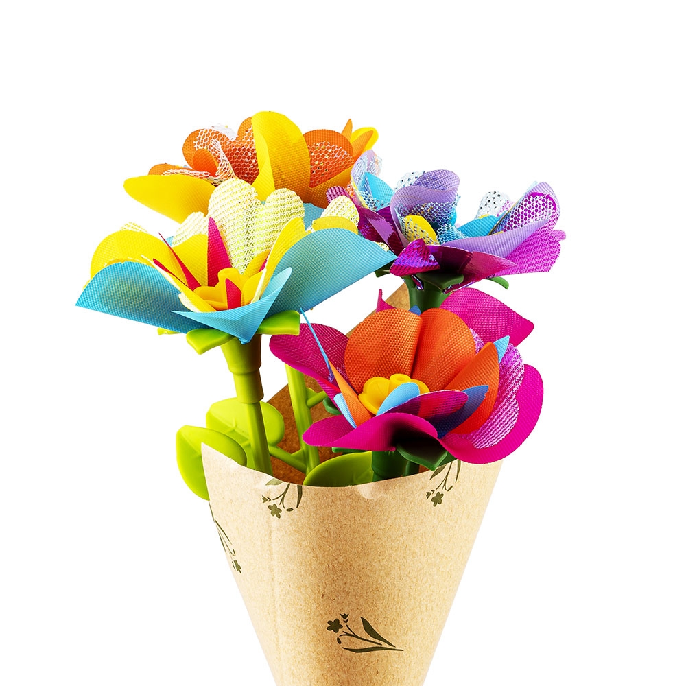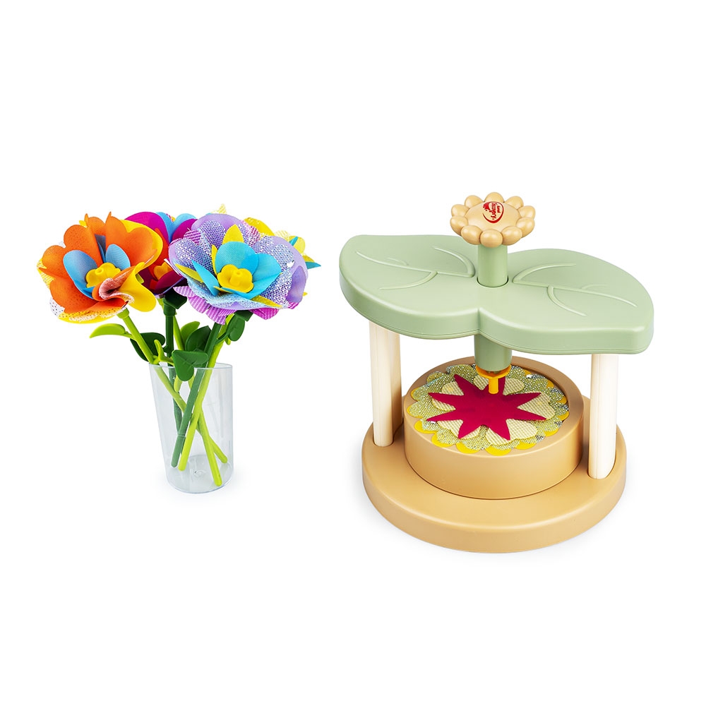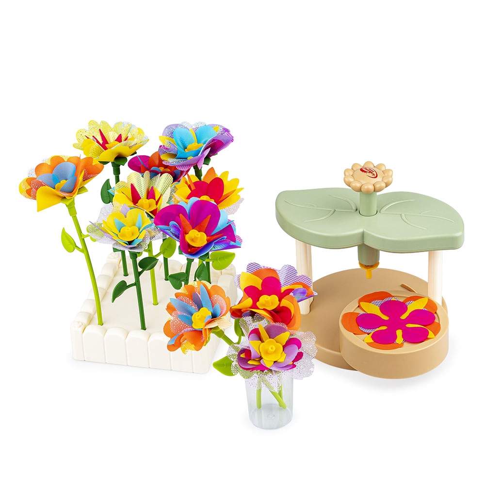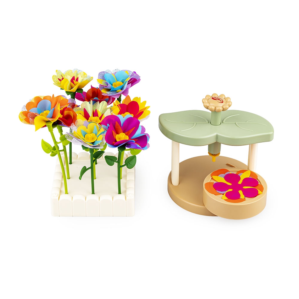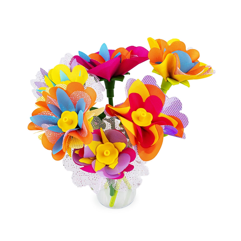 Z tym kreatywnym zestaw stworzysz zabawkowe roślinki, które będą wspaniałą ozdobą pokoju, a także uroczym prezentem dla bliskiej osoby. W zestawie znajduje się maszynka do łączenia elementów w główkę kwiatka, kolorowe płatki, szypułki, środki oraz łodygi w dwóch długościach. Dodatkowo, opakowanie zawiera także akcesoria do wyeksponowania gotowych kwiatków i stworzonych z nich bukietów.