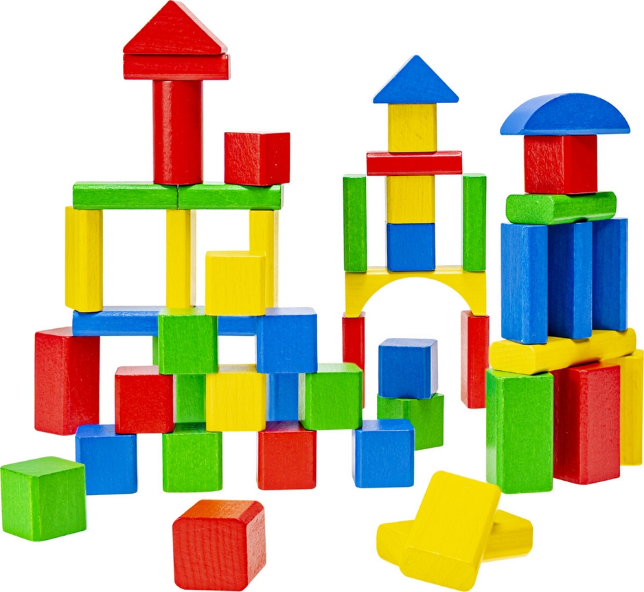 Tytuł: Heros, Drewniane kolorowe klocki 50 el. w pudełkuPodtytuł: Wiek: 1+