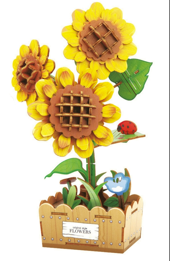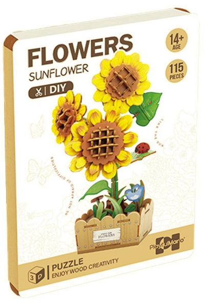 Tytuł: Drewniane kwiatki 3D - Słoneczniki, 116el.Podtytuł: Wiek 14+