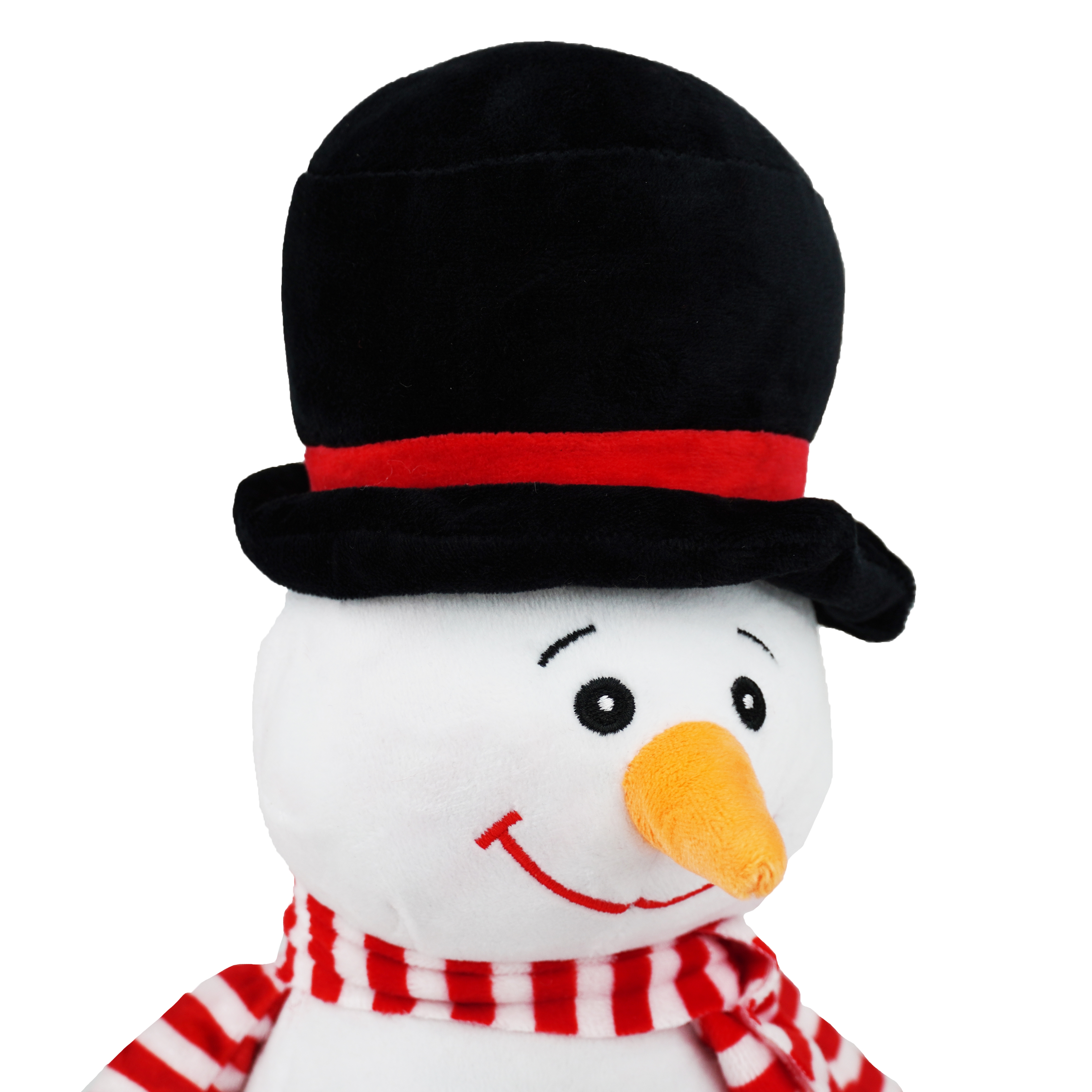 Świąteczny pluszowy bałwanek, który w swoim wielkim kapeluszu czeka na śnieg - z nadzieją, dzięki temu pojawią się jego koledzy!