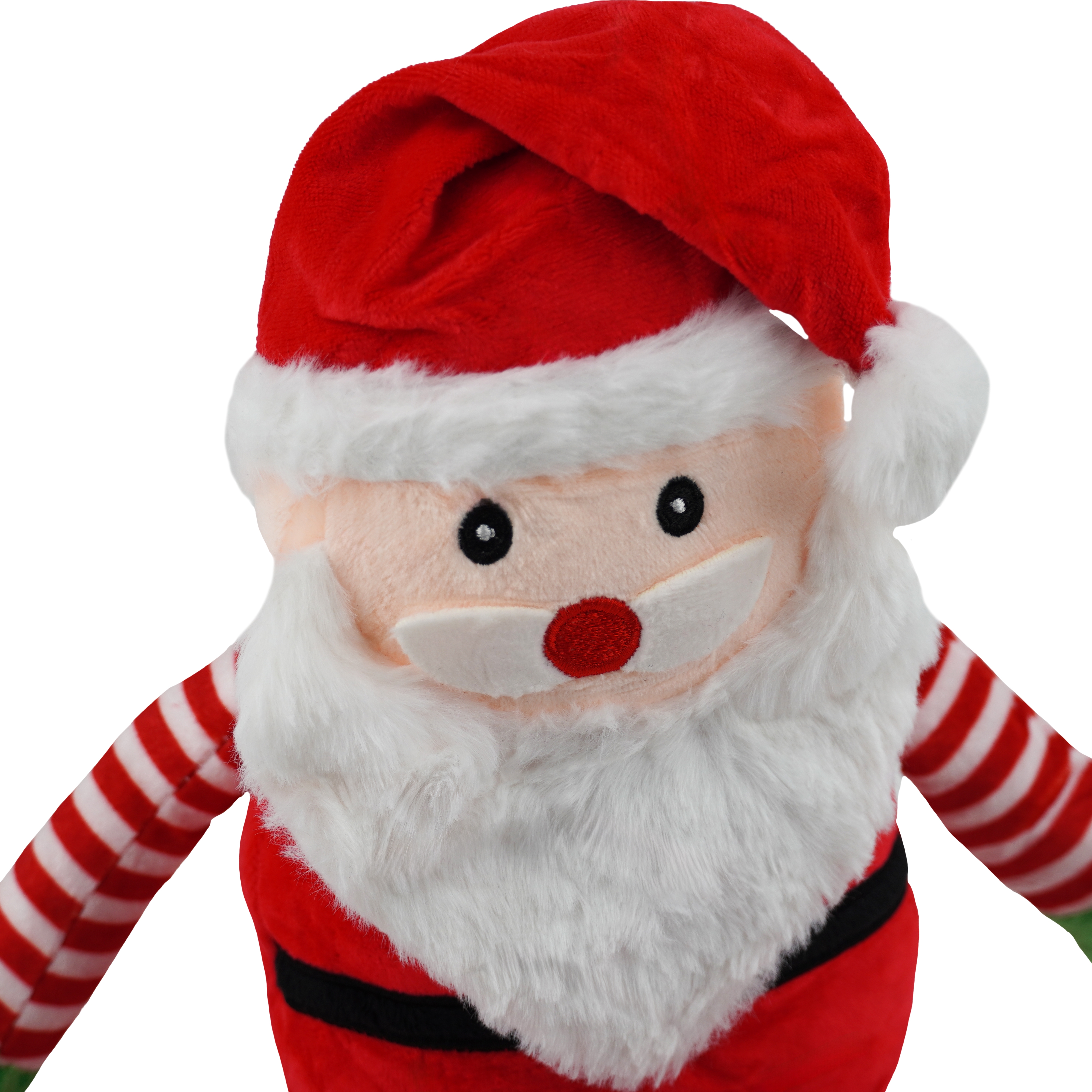 Pluszowy Mikołaj z długimi biało-czerwonymi kończynami - idealny element świątecznego wystroju.