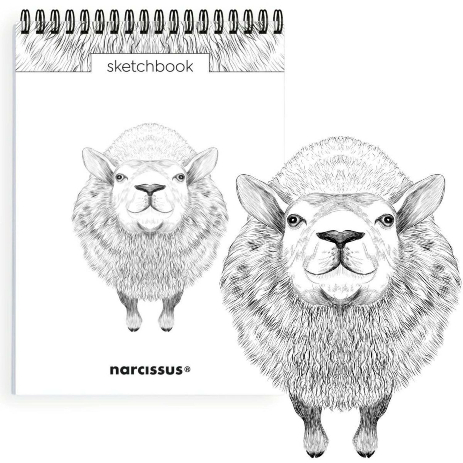 NARCISSUS pionowy szkicownik artystyczny na spirali A5 Owca, 60 kartek z perforacją