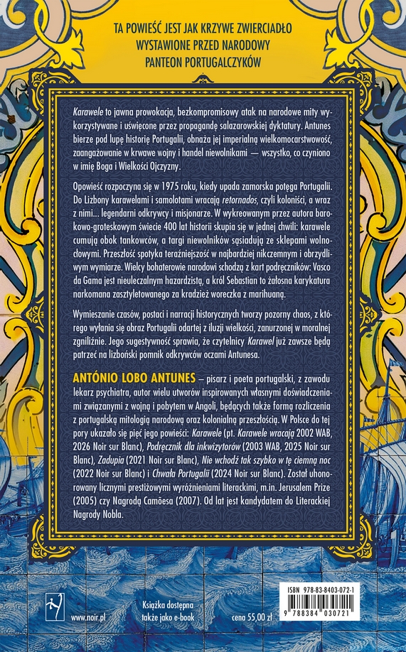 Wymieszanie czasów, postaci i narracji historycznych tworzy pozorny chaos, z którego wyłania się obraz Portugalii odartej z iluzji wielkości, zanurzonej w moralnej zgniliźnie. Jego sugestywność sprawia, że czytelnicy Karawel już zawsze będą patrzeć na lizboński pomnik odkrywców oczami Antunesa.