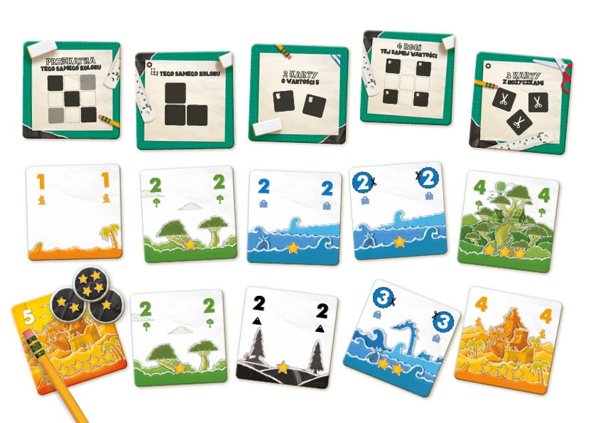 - Wyłóż określone karty, by stworzyć najlepszy pejzaż.