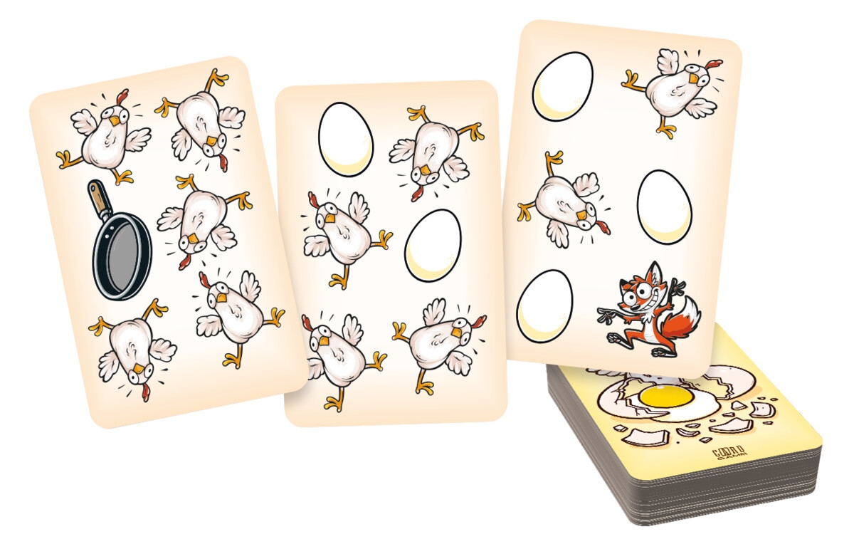 Myślisz, że jest więcej jajek? A może kurczaków? Uważaj na lisy, które zabierają po jednym kurczaku z każdej karty! A co z patelniami? One zabierają po jednym jajku z każdej karty! Spróbuj zebrać jak najwięcej kart, obstawiając trafniej niż pozostali. Na koniec wygrywa gracz z największą liczbą kart.