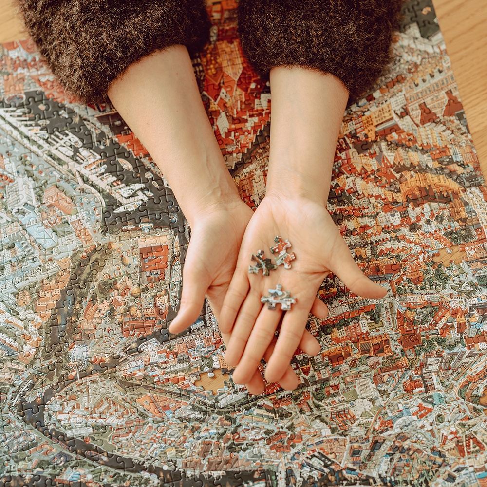 Puzzlove Miasto Gdańsk to 1000-elementowe puzzle, które przedstawiają panoramę nadmorskiej metropolii i portu. Spójrzcie na Główne Miasto, Motławę, Wyspę Spichrzów, stocznię i port z zupełnie nowej perspektywy.