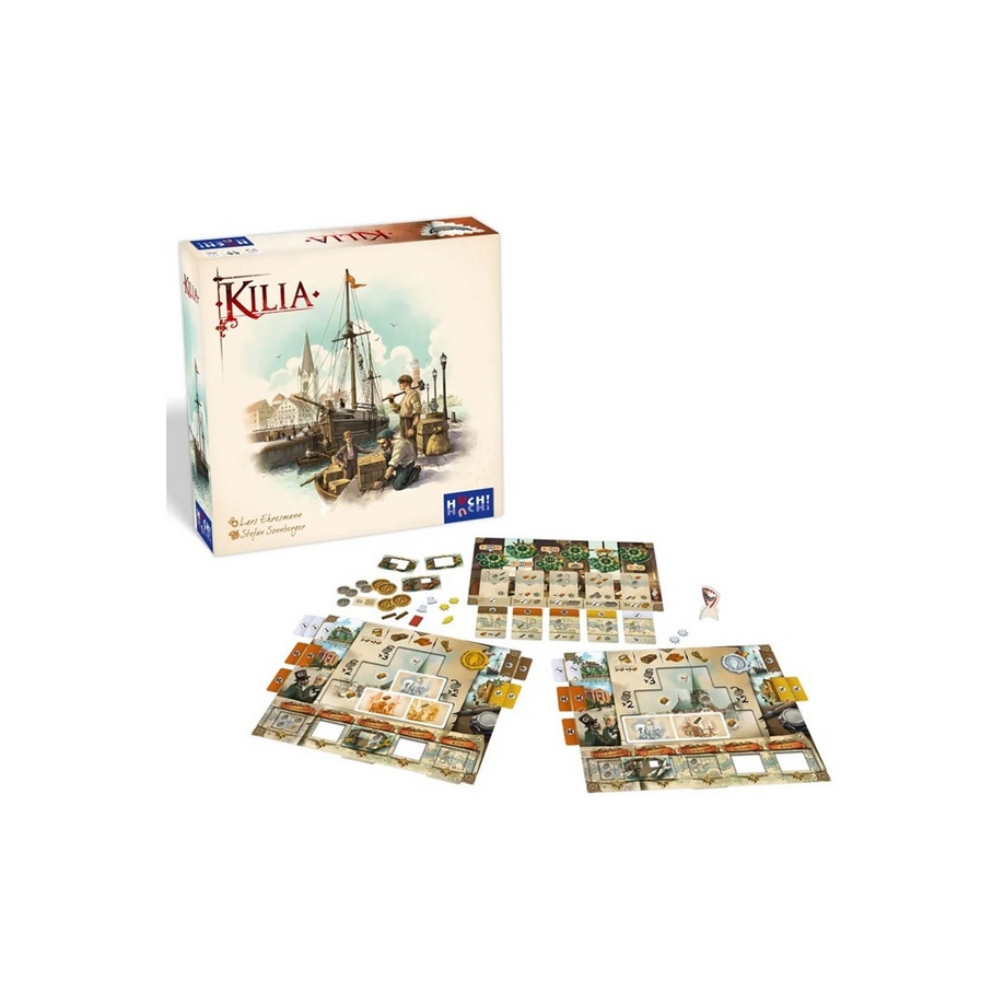 Kilia to strategiczna gra planszowa, w której gracze wcielają się w wpływowych kupców, rywalizujących o dominację w mieście poprzez handel, zarządzanie zasobami i sprytne wykorzystywanie kart akcji. Każda decyzja przy radzie miejskiej, każdy wysłany statek i każdy podpisany kontrakt przybliża do zwycięstwa lub wystawia na atak konkurencji.