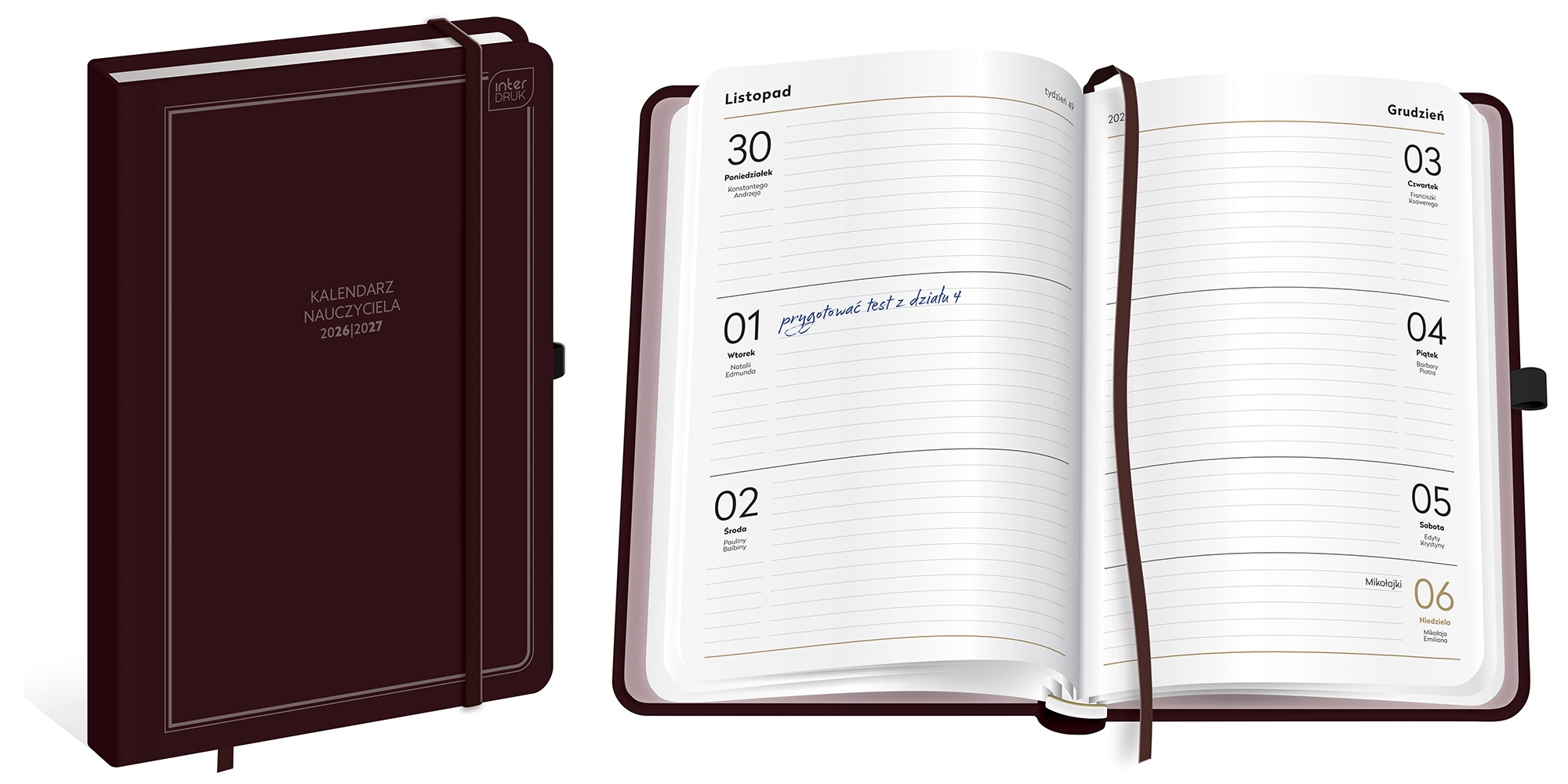 - Kalendarz nauczyciela w formacie A5.