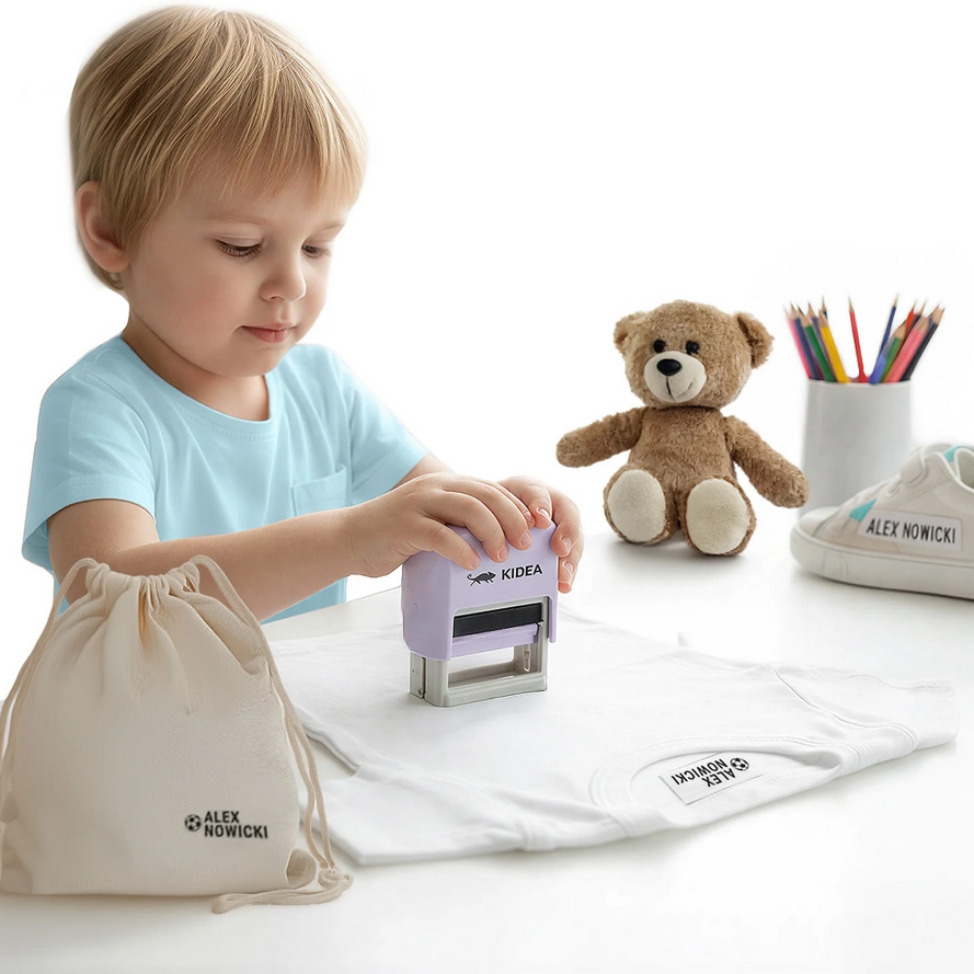 Stempel pomaga uniknąć pomyłek przy sortowaniu prania, ułatwia podpisywanie rzeczy do szkoły i przedszkola oraz pozwala na tworzenie estetycznych, trwałych oznaczeń. W zestawie znajdują się wszystkie potrzebne elementy: stempel, literki, pinceta, tusz.