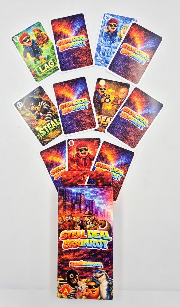 Tytuł: Steal Deal Brainrot (Zwiń Brainrota) - kieszonkowa rodzinna gra karcianaPodtytuł: Wiek: 6+
